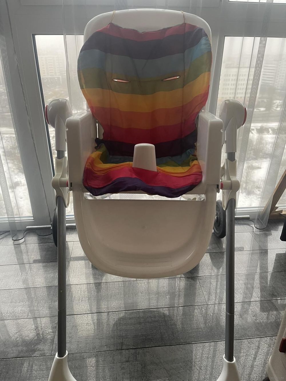 Стульчик для кормления в полном комплекте в хорошем состоянии. Все исправно. Столик к нему имеется. Самовывоз