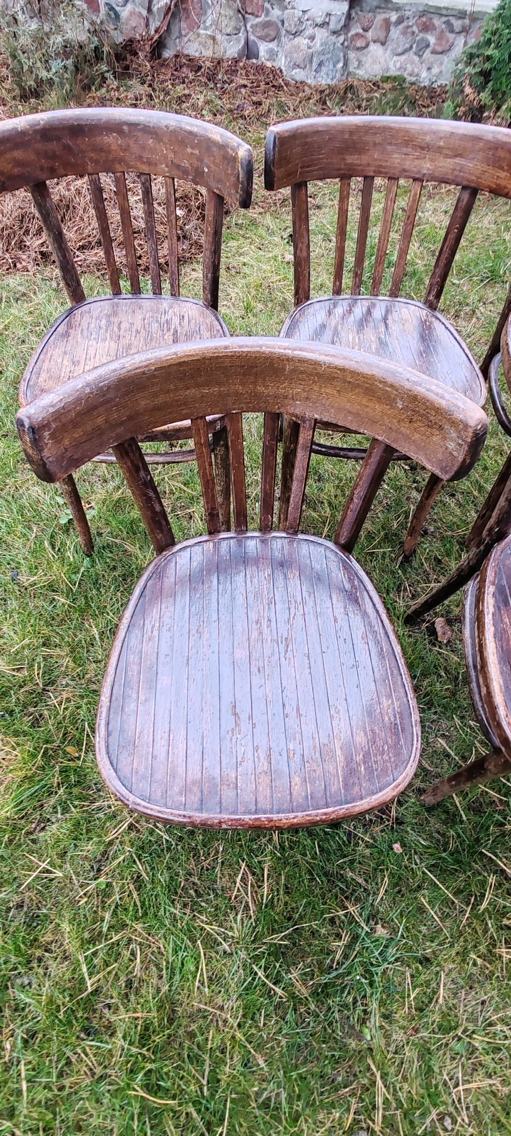 | Стулья буковые. Производство Чехия или Румыния. 60 е годы. Состояние отличное,без утрат. Из нюансов:в одном вздут шпон на сидушке, поправимо. В другом-кто-то крепил спинку. Отразил на фото. Вышлю | |