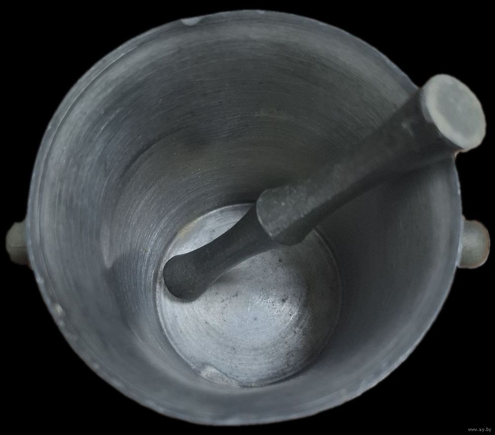 Ступка, оловянная, винтажная. 7.5 см на 6.5 см. Пестик 9см