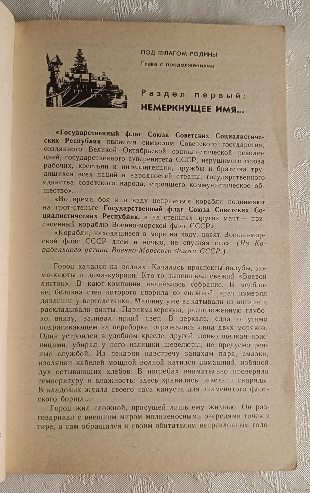 Океанский ракетно-ядерный Военно-Морской Флот — это одно из важнейших звеньев обороны нашей Родины. Еще в 1927 году началось строительство первых советских боевых кораблей. Слава их гремела на всех морских театрах Великой Отечественной войны. Была у флота и колыбель — конструкторские коллективы, в которых самоотверженно трудились замечательные люди. Имена их никогда не назывались при жизни. Таков суровый удел создателей оборонной техники. О главных конструкторах первых советских надводных кораблей рассказывает книга ленинградского журналиста Ю.Стволинского.