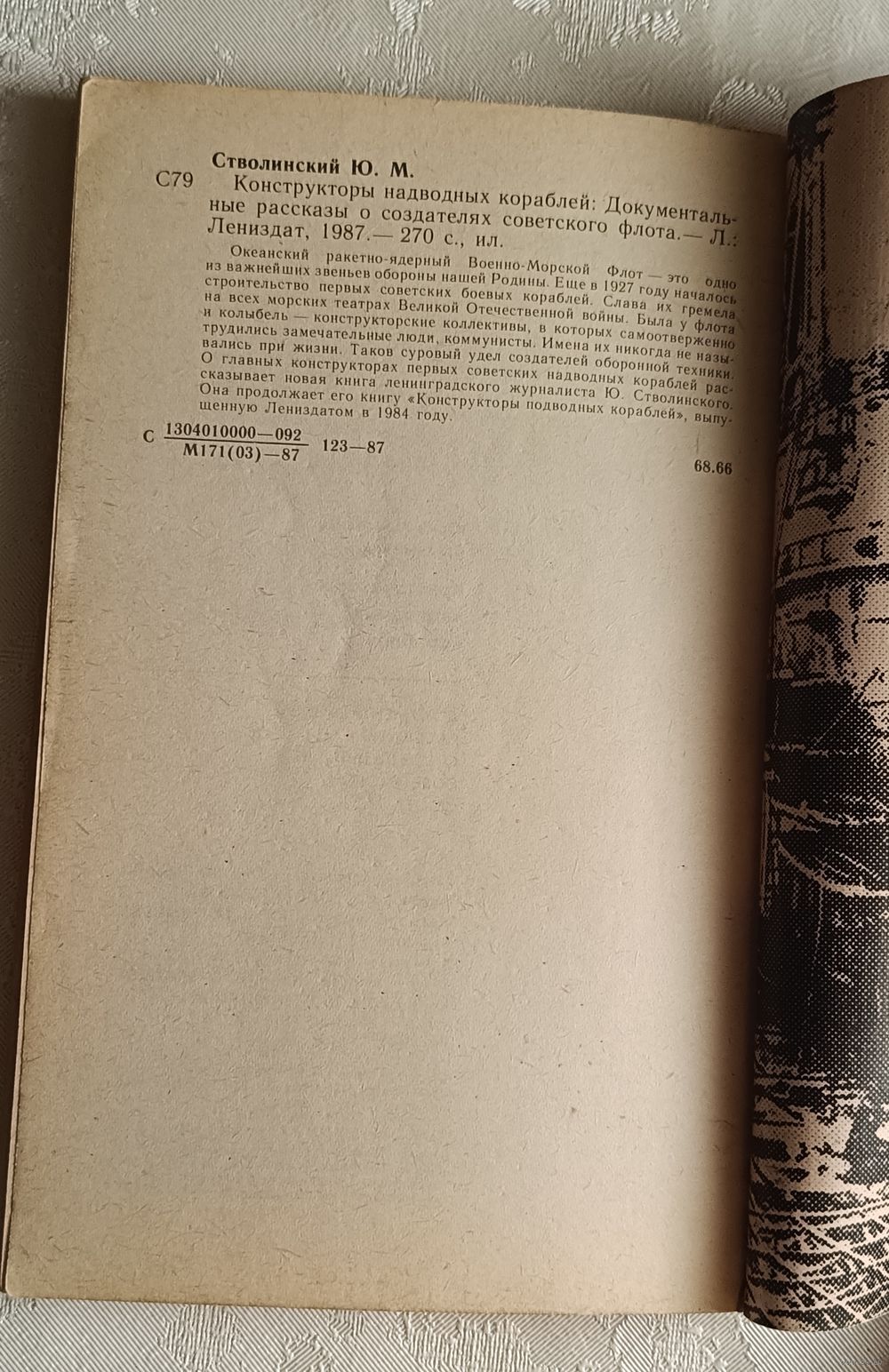Стволинский Юрий. Конструкторы надводных кораблей: Документальные рассказы о создателях советского флота. - Л.: Лениздат, 1987. 270 с., ил., мягкая обложка, обычный формат.