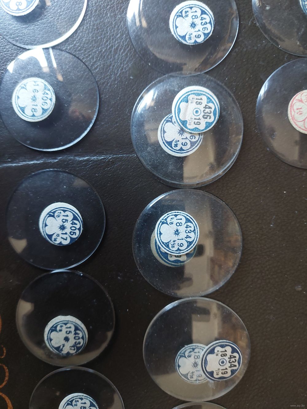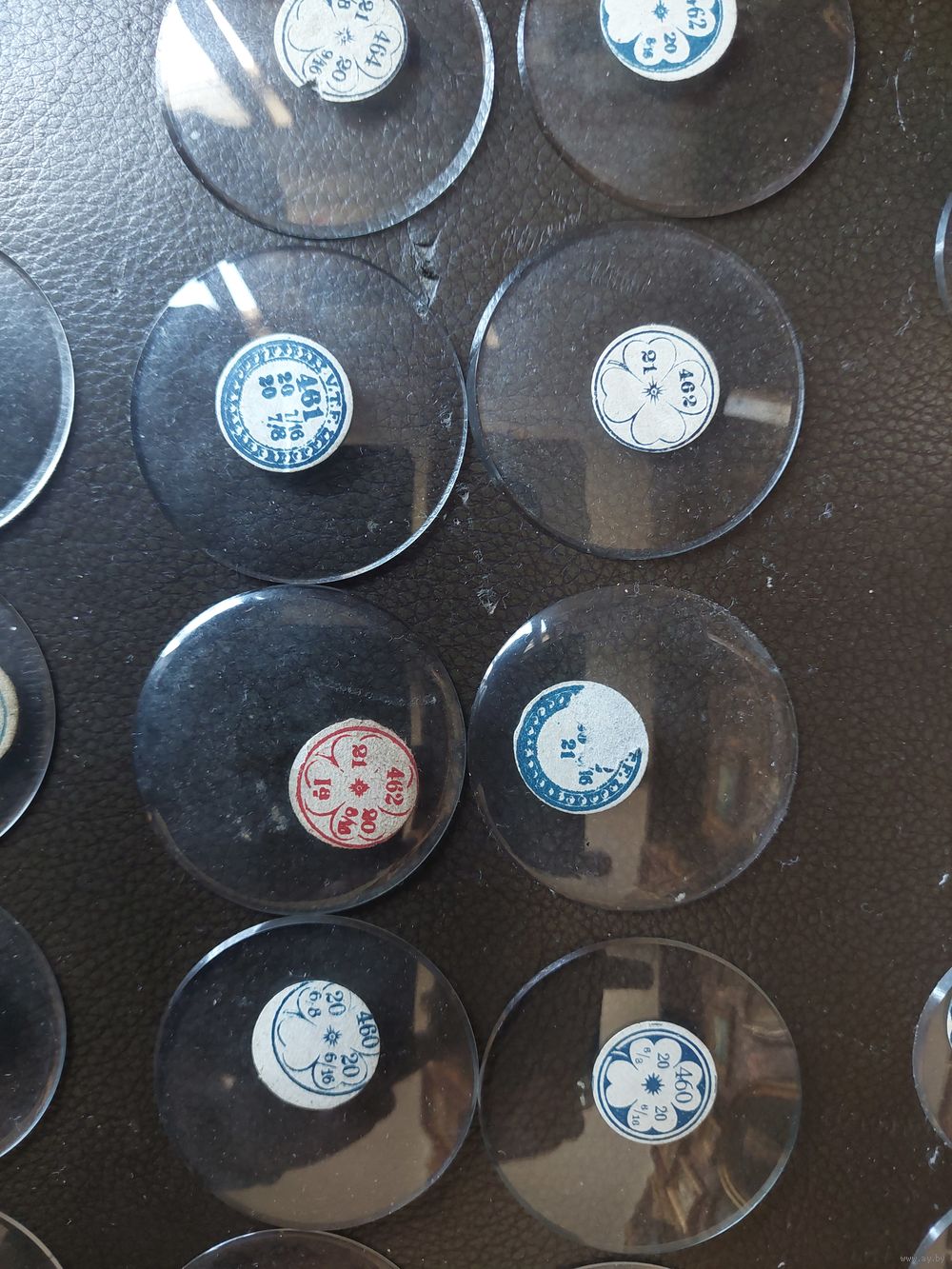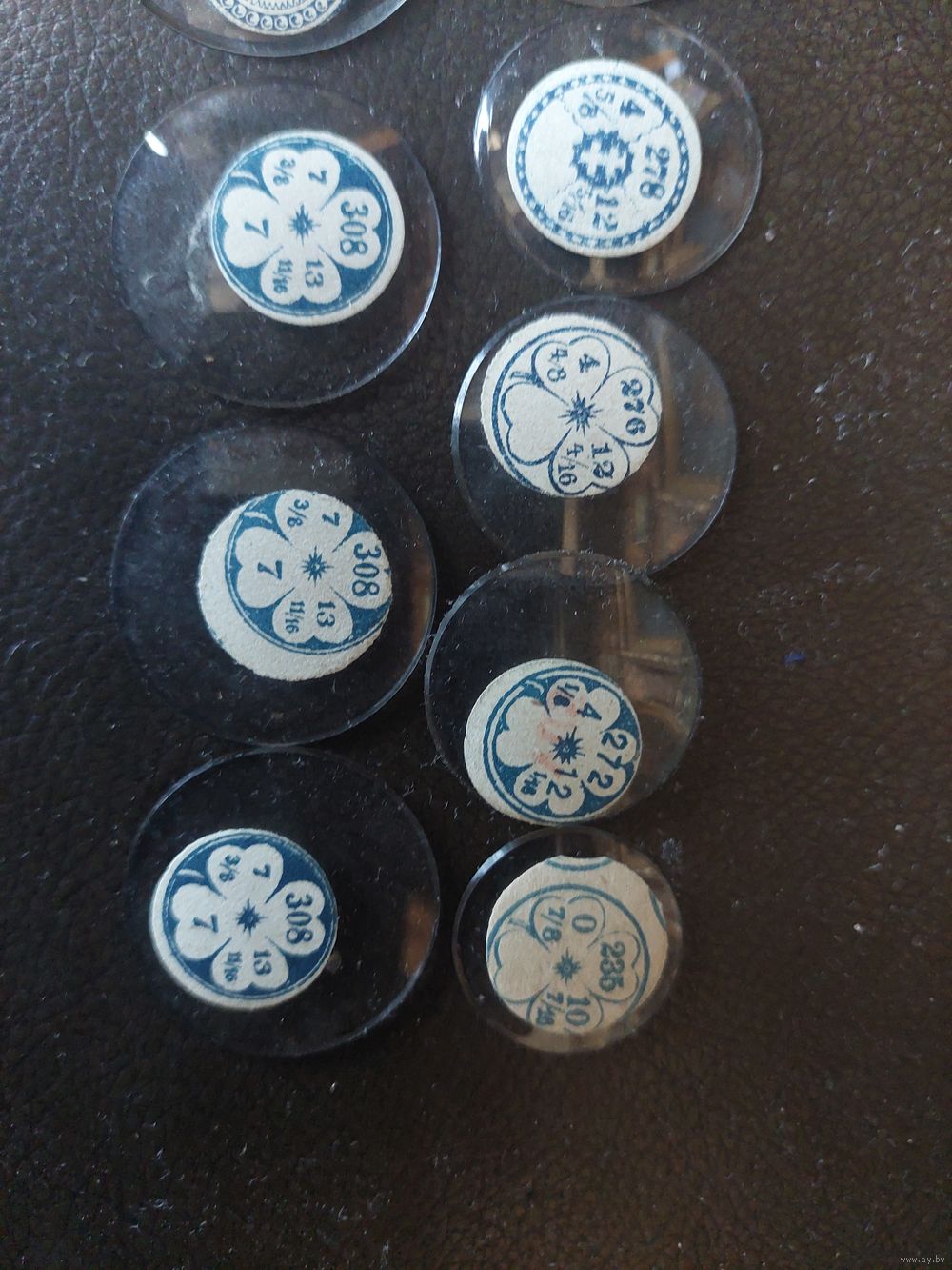 Стекло. Не пластик. Не Китай. Предмету 90-100 лет. Франция. Иногда Швейцария. В кружочками размеры. Консультаций не даю- не специалист. Новые. Цена за шт.