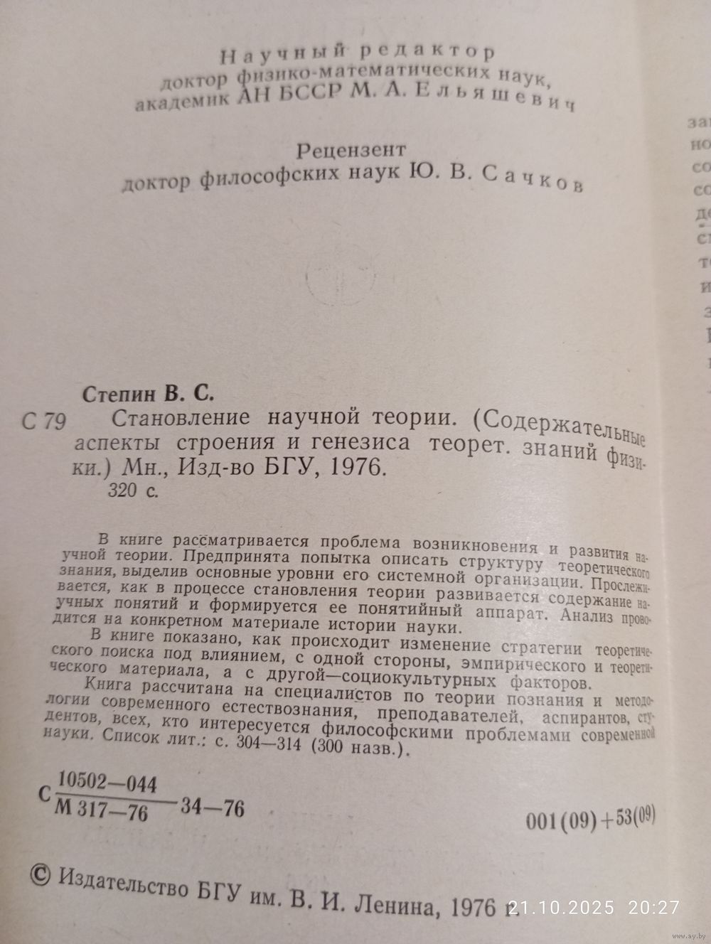 Становление научной теории. Стёпин В. Мн. БГУ 1976. В хорошем состоянии, тв переплет, суперобложка. 320 с. Тираж 2200. Возможность отправки Белпочтой, полная предоплата