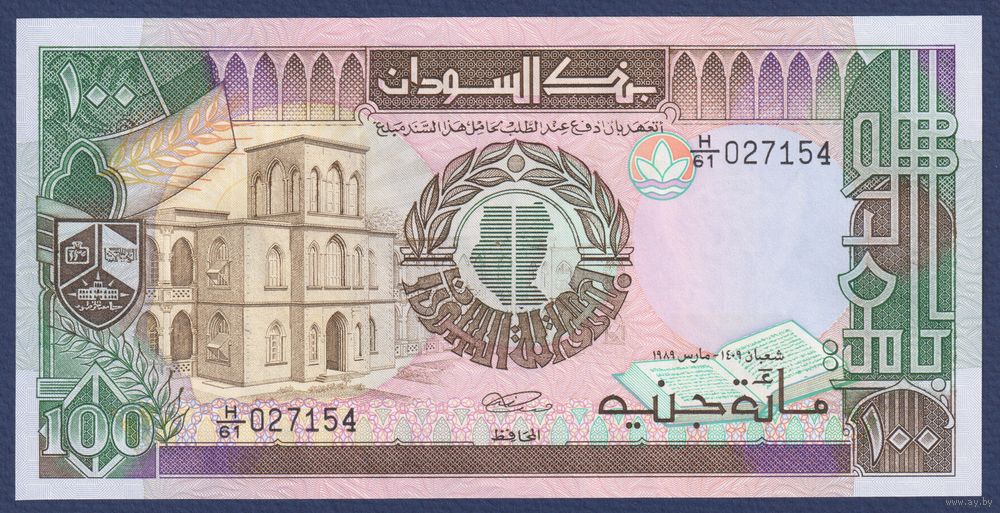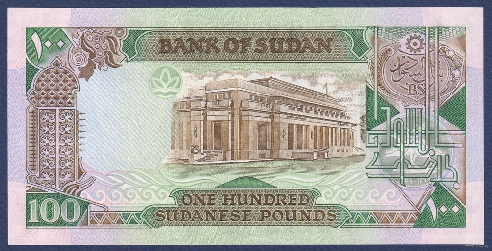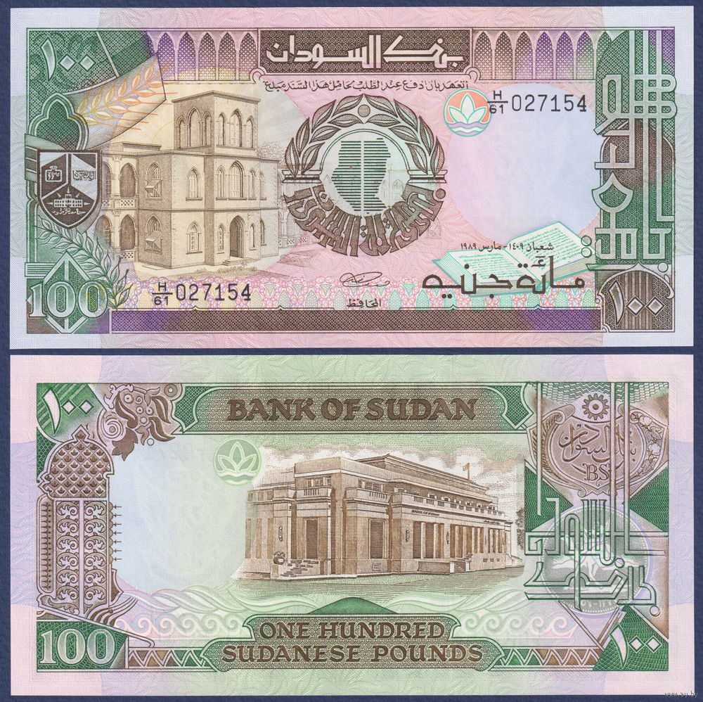 Судан, 100 фунтов 1989 г, P-44b (H, университет и здание Банка Судана в Хартуме), UNC