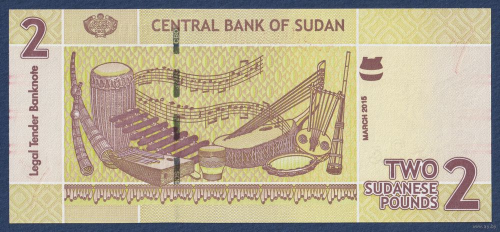 Судан, 2 фунта 2015 г, P-71b (BF, керамика, музыкальные инструменты), UNC