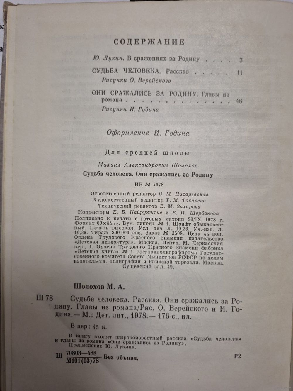 В книгу входят широко известный рассказ "Судьба человек" и главы из романа "Они сражались за Родину".