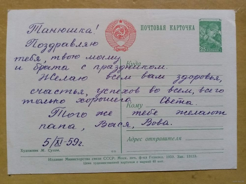 Сухов 1959 С праздником великого Октября! подписана