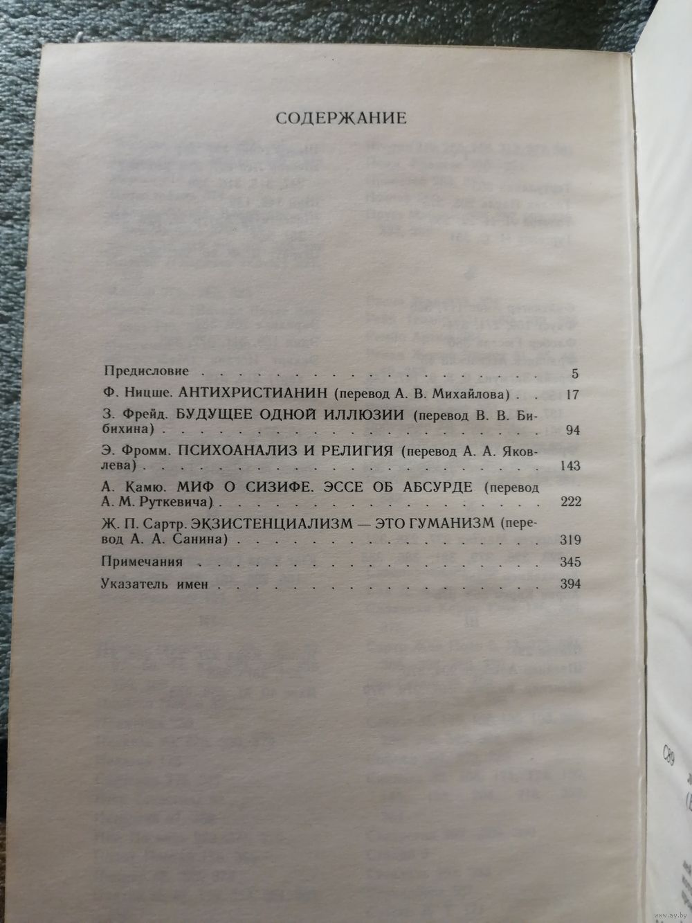 Книга представляет собой сборник произведений выдающихся западных мыслителей и философов 19-го и 20-го веков, таких как Ф. Ницше, З. Фрейд, Э. Фромм, А. Камю и Ж. П. Сартр. В ней собраны ключевые идеи этих авторов, некоторые из которых публикуются на русском языке впервые. Издание адресовано широкому кругу читателей, интересующихся философией, психологией и эстетикой.