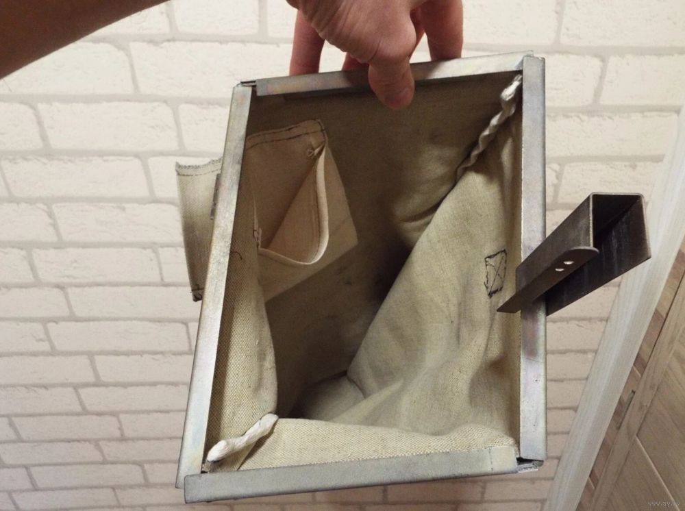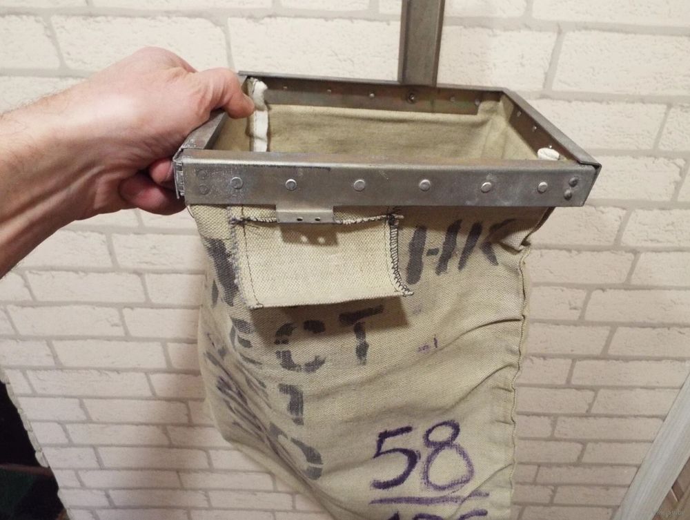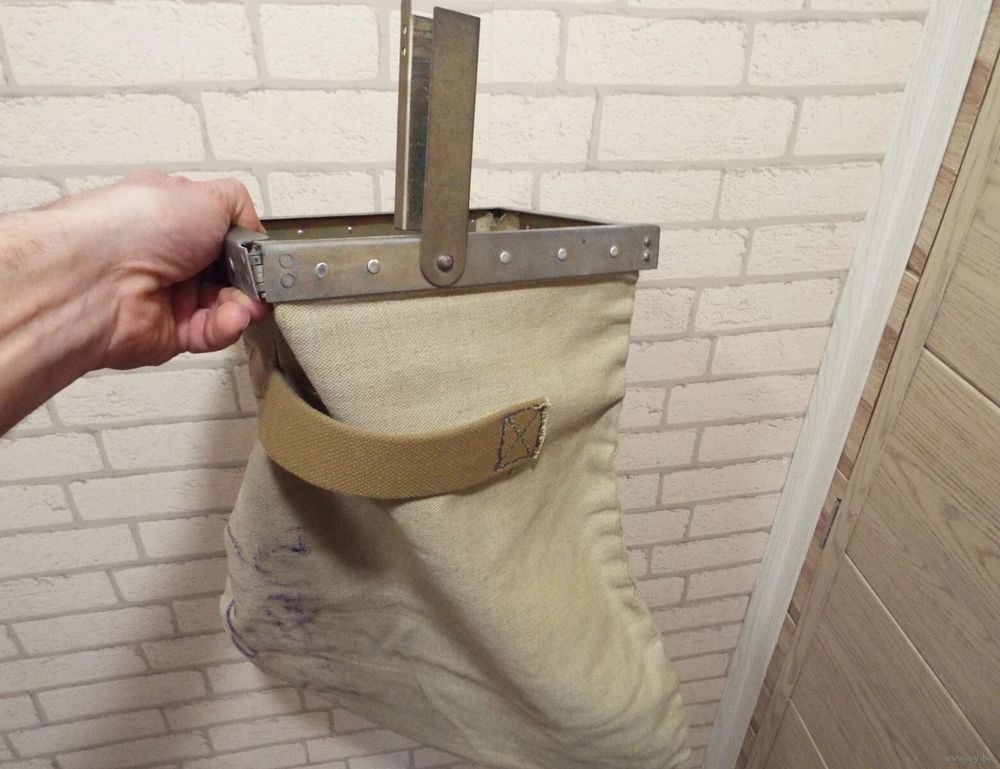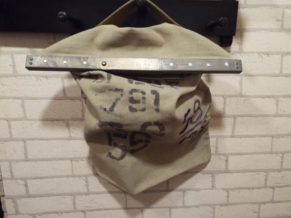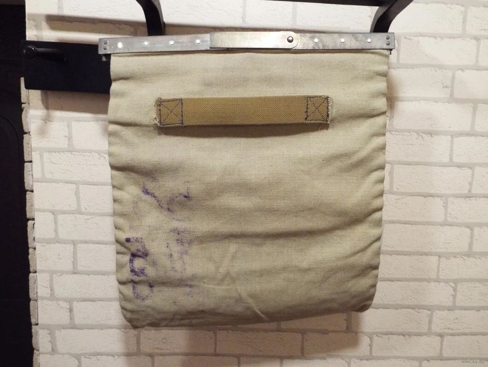 Размер. 44*38 сантиметров. Длина металлического прутка 40*1,5*2,5*3,5 сантиметра. Внешний карман для печати 9*6 сантиметров. Внутренний карман для кассового чека 13*14 сантиметров. Размер штанги в раскрытом состоянии 23*16 сантиметров. Надпись: Приорбанк, Брест (Беларусь). Вес 650 грамм. Планка оцинкована на заклепках. В отличном, чистом состоянии. Материал брезент