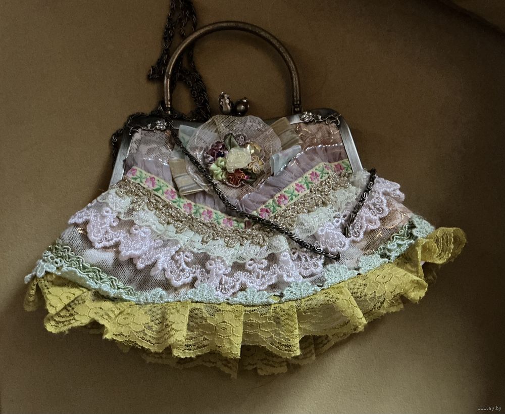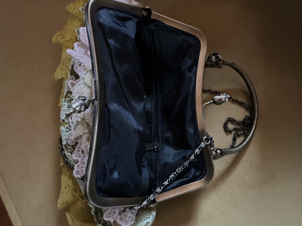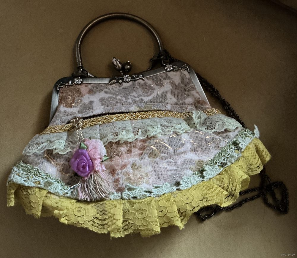 Красивая сумочка кружево , цветы , фурнитура под бронзу , 26 см х 19 см , ручка длинная , корман снаружи и внутри