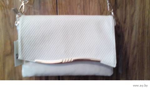новая,светлокремовая,внутри 3 отделения,под клапаном одно отделение,ремень регулируется,