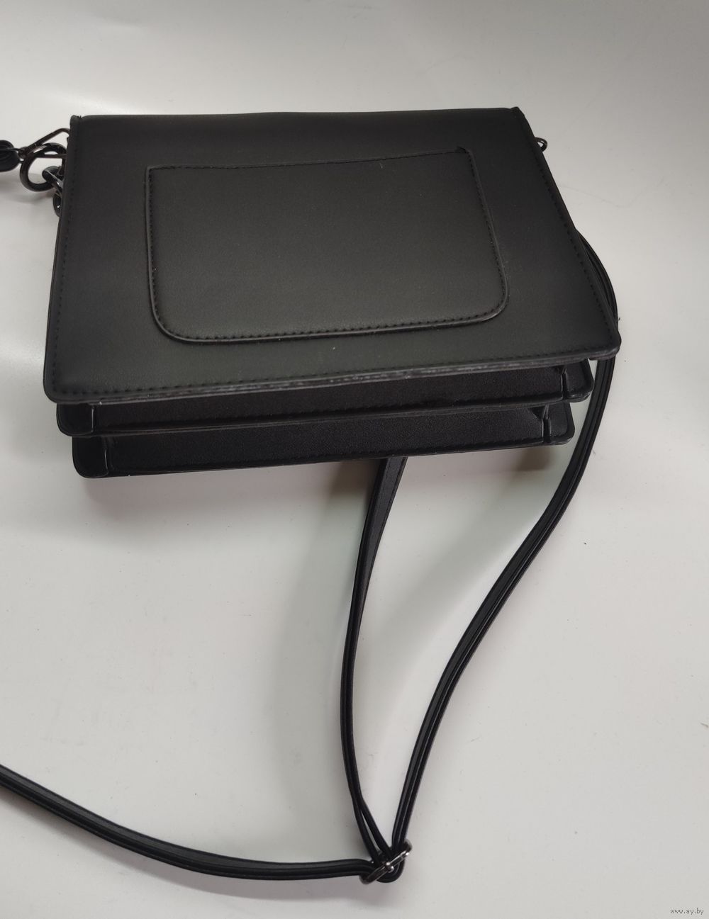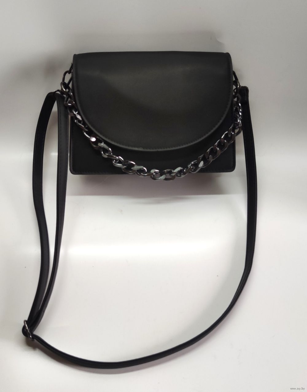 Качественная, мягкая, приятная на ощупь. Выполнена из прочной премиум экокожи, очень схожей по качеству с натуральной. Регулируемый длинный узкий ремень + короткая ручка-цепь черного цвета. Карманы -- внутренний на молнии на всю глубину сумки делит внутренний объём на 2 отделения; внутренний открытый + внешний открытый.