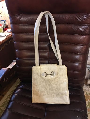 Сумка женская небольшая молочного цвета с двумя ручками, без дефектов , Внутри два отделения и несколько карманчиков для мелочей