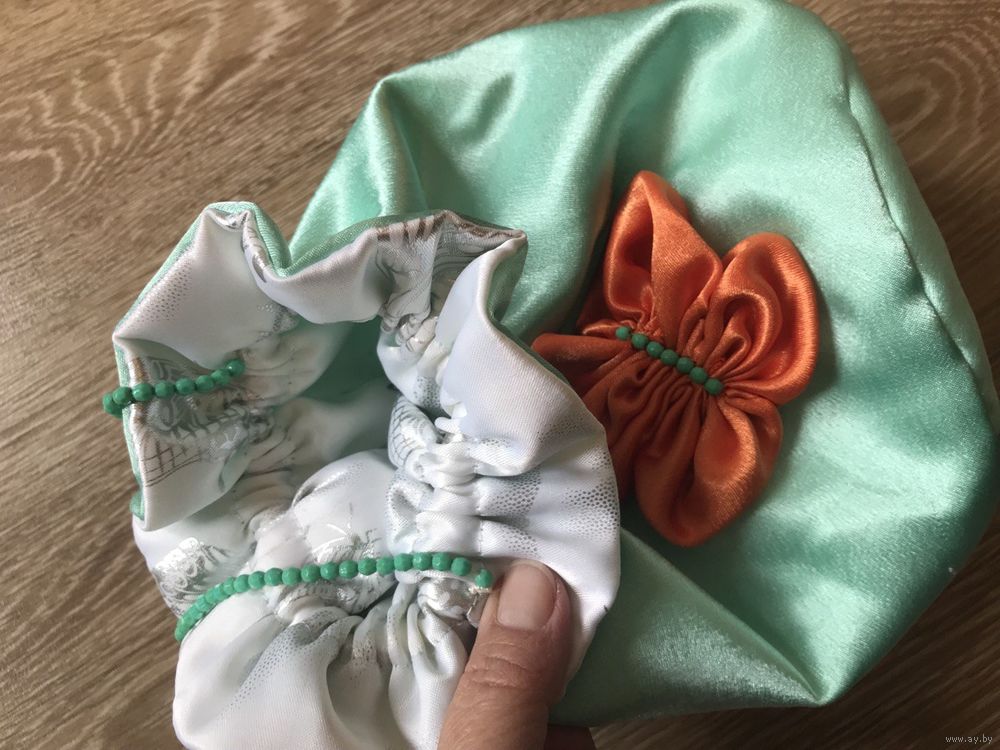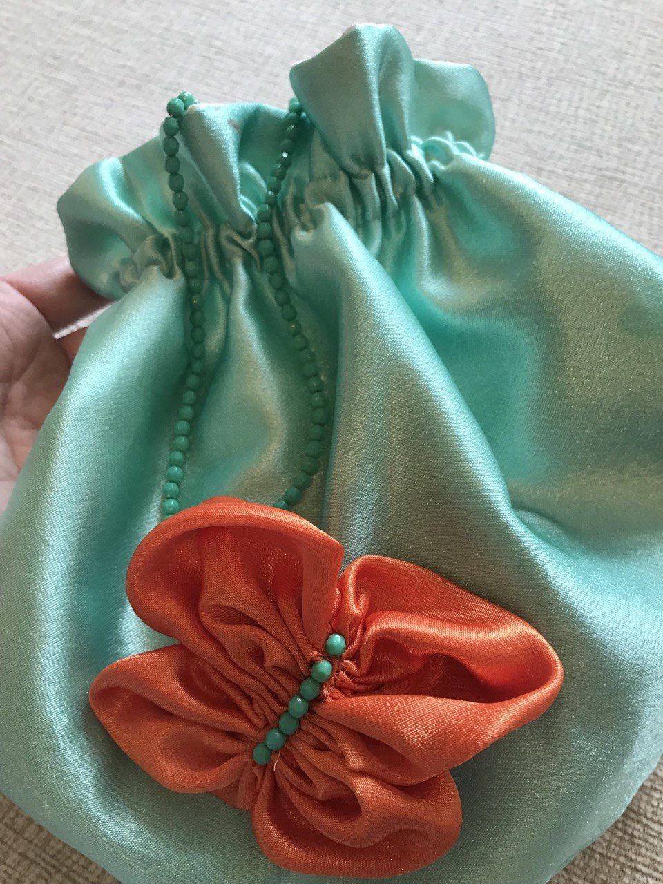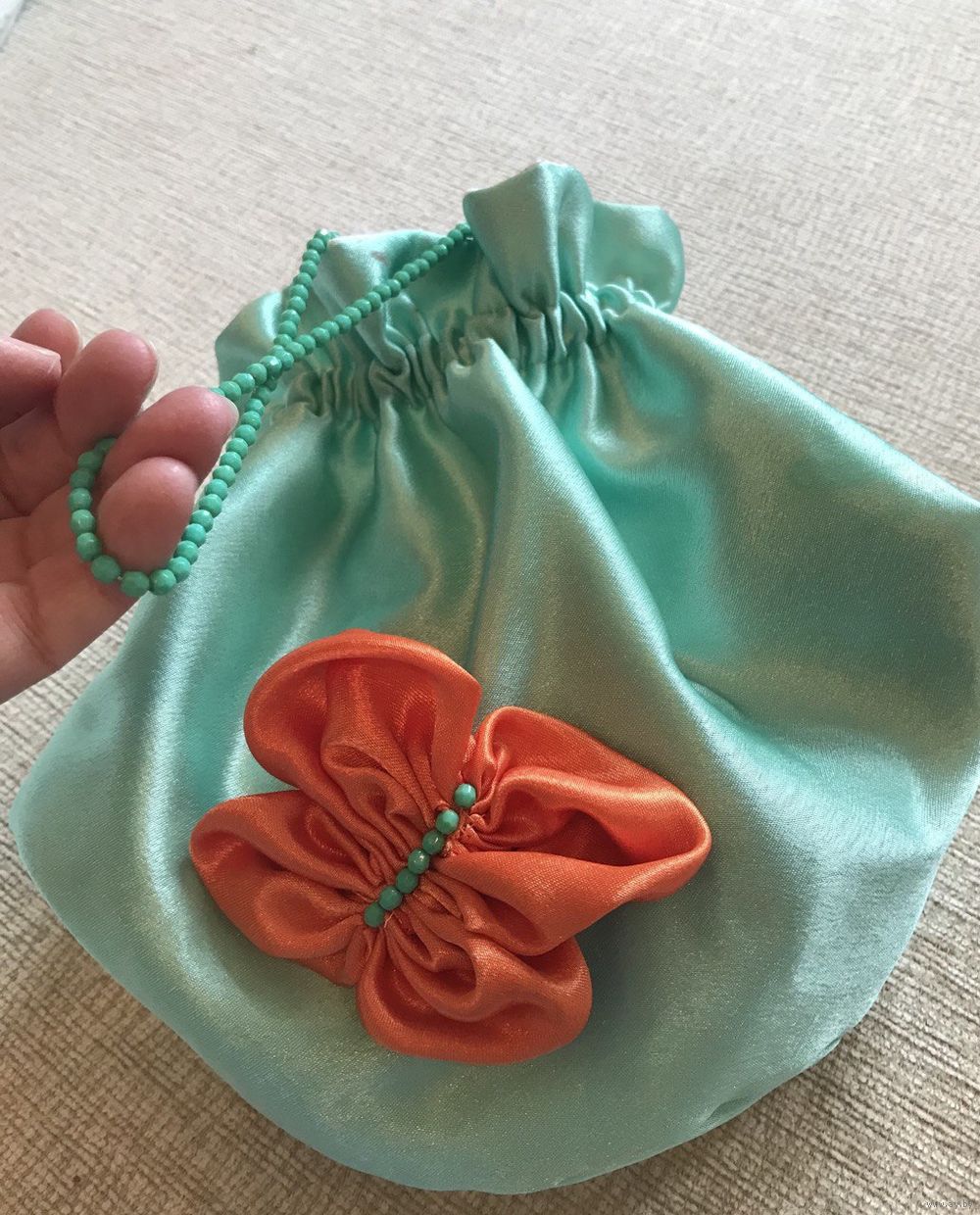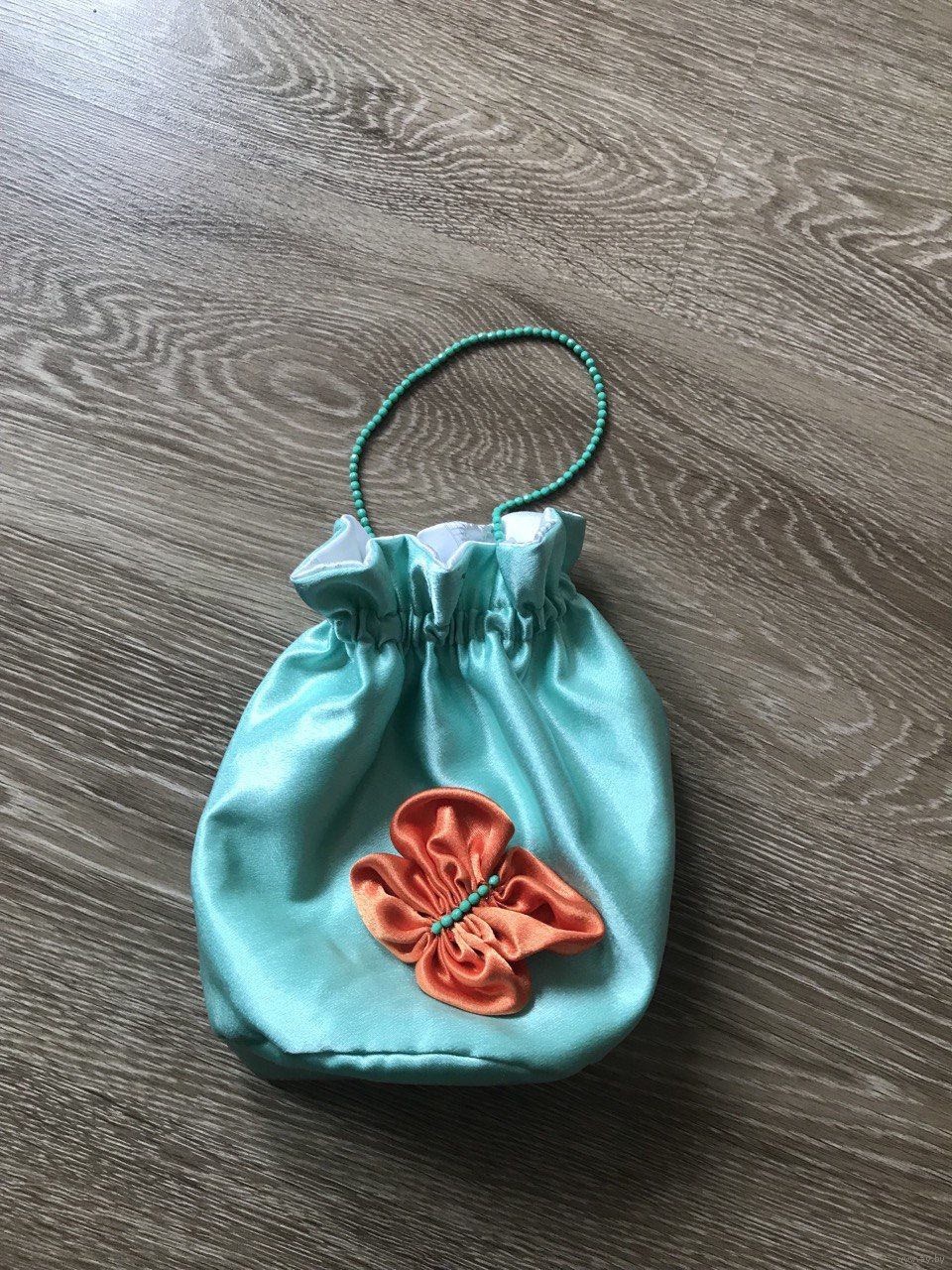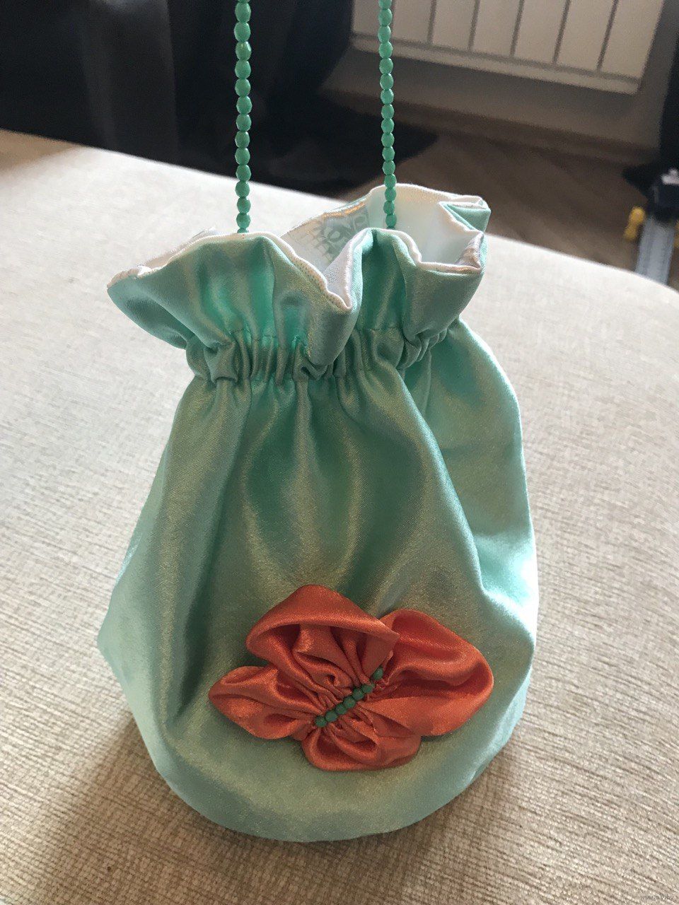 Оригинальная сумочка - мешок ручной работы из атласной ткани на подкладке с утолщением.