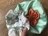 Цвет - мята, нежно-зеленый с оранжевым цветком-бабочкой. Использованы бусины. Hand made.