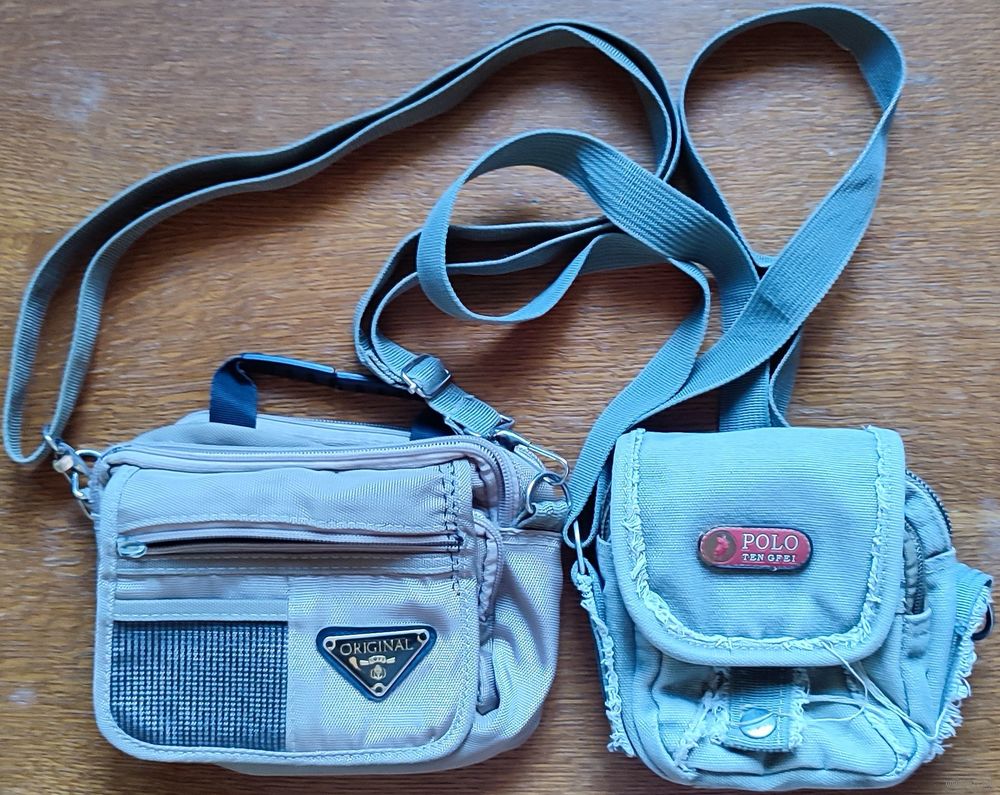 Сумочки-барсетки на пояс-плечо унисекс 2шт одним лотом. Полностью дефектные: где-то сломан карабин, где-то нет собачки на замочке;} Самый бюджетный вариант для хранения разной мелочёвки.