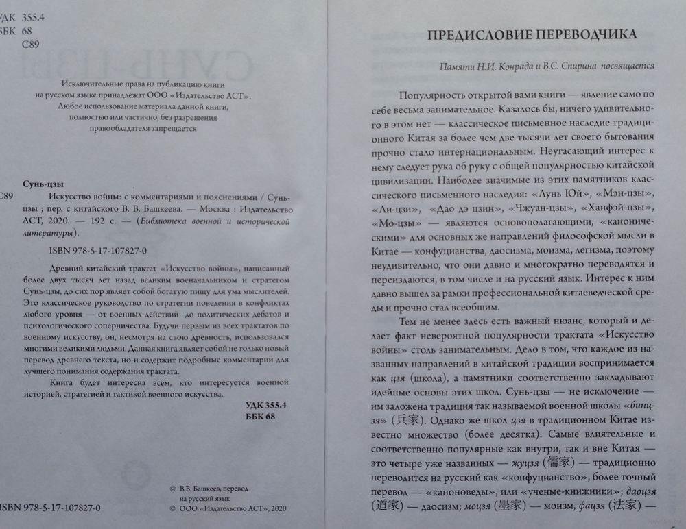 Большой формат. Тираж 3000 экз. 196 стр. На кит. и рус. яз. Сунь-Цзы жил в V в. до н.э. Его настоящее имя Сунь-У-Сунь-Цзы означает "Учитель Сунь". Китайская традиция считает его автором самого первого произведения, породившего в дальнейшем литературный жанр "Бин Фа" ("Искусство войны"). Одновременно это и самый первый в истории человечества трактат, посвященный войне и военному искусству.