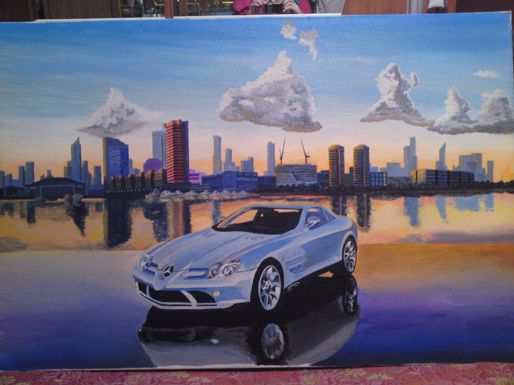 Масло холст,2014 г. Размер 80х120 см (сам холст),одет в двойной багет и закрыт оргстеклом (2мм) для лучшей защиты от пыли и влаги.Картина выставлялась на двух выставках и подойдет для украшения офиса или дома,отличный подарок для ценителей классических автомобилей.Больше фото и видео при личном контакте
