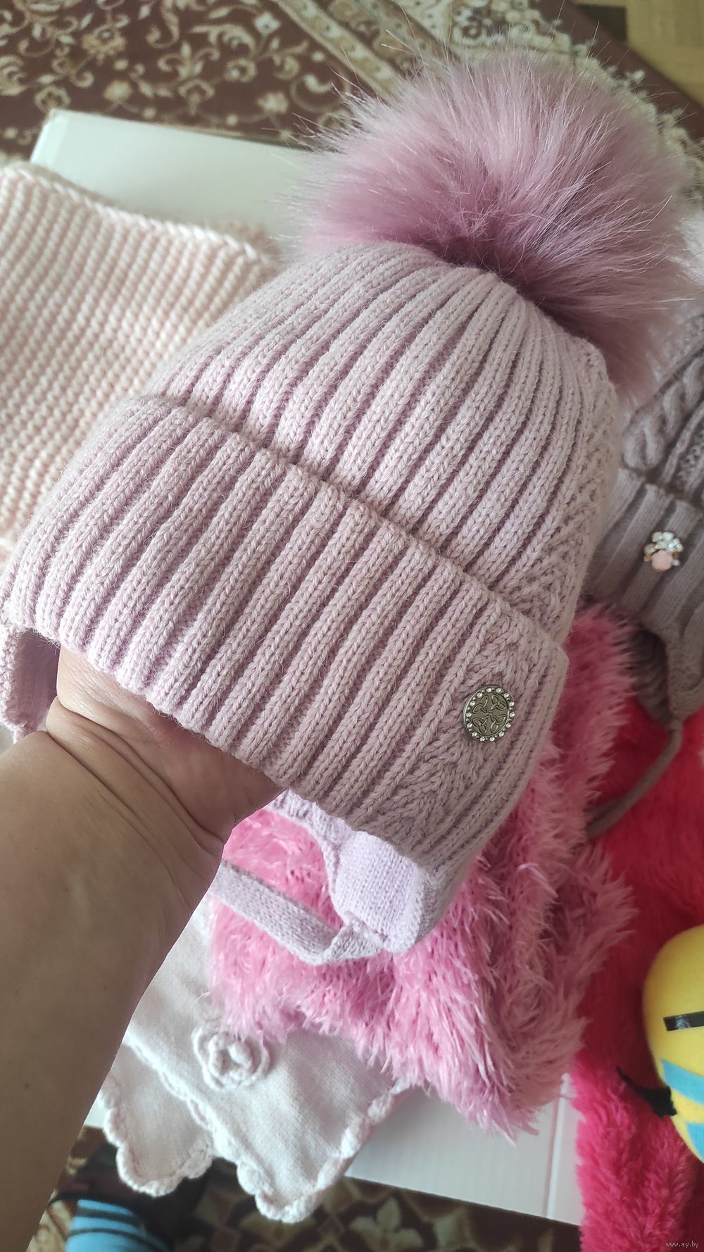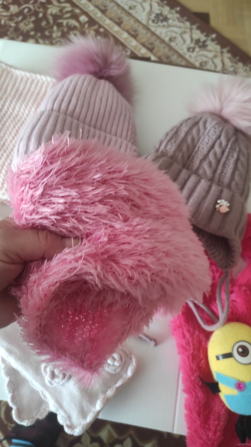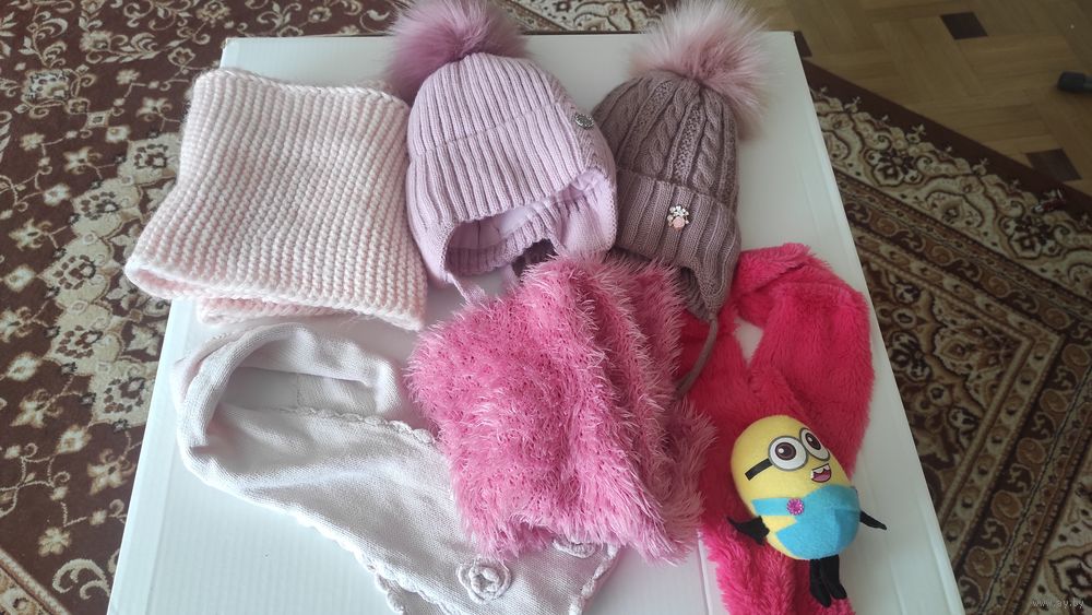 2 шапки на зиму, ношены буквально пару раз, пропустили размер. На 5-6 лет. По 15,00