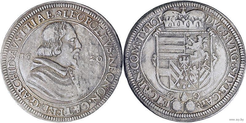 Очень редкий рейхсталер 1620 года австрийское подчинение Тироль Холл Эрцгкрцог Леопольд 5 как губернатор ( 1619-1625 гг) -только 6 лет штемпеля Ханс Кристоф Аменде 27.52 гр вес отличное состояние каталоги Вогль 175\1 Дэвенпорт 3328