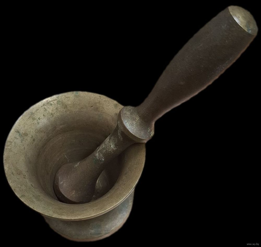 Супка, антикварная, медная, тяжелая. 9x9 см. Пестик 19см