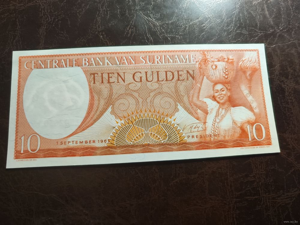 Суринам 10 гульденов образца 1963 года AUNC p121b