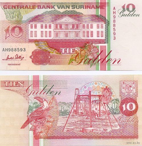 Суринам 10 гульденов образца 1996 года UNC p137b