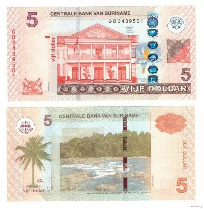 Суринам 5 гульденов образца 2012 года UNC p162b