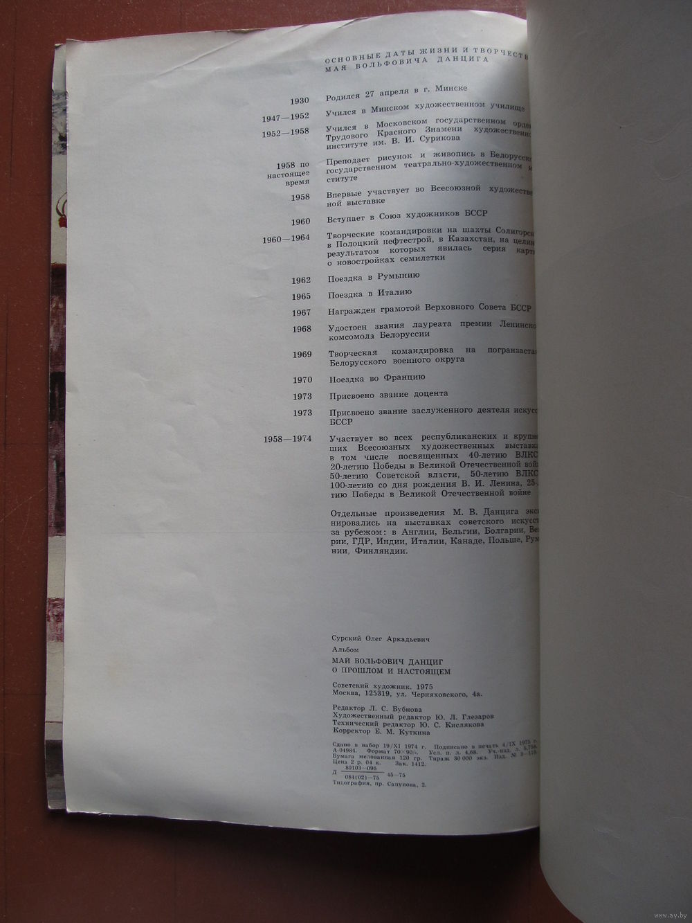 Альбом цветных репродукций заслуженного художника БССР Мая Вольфовича Данцига ( под редакцией О.А. Сурского). Москва : Советский художник , 1975. 31 стр.