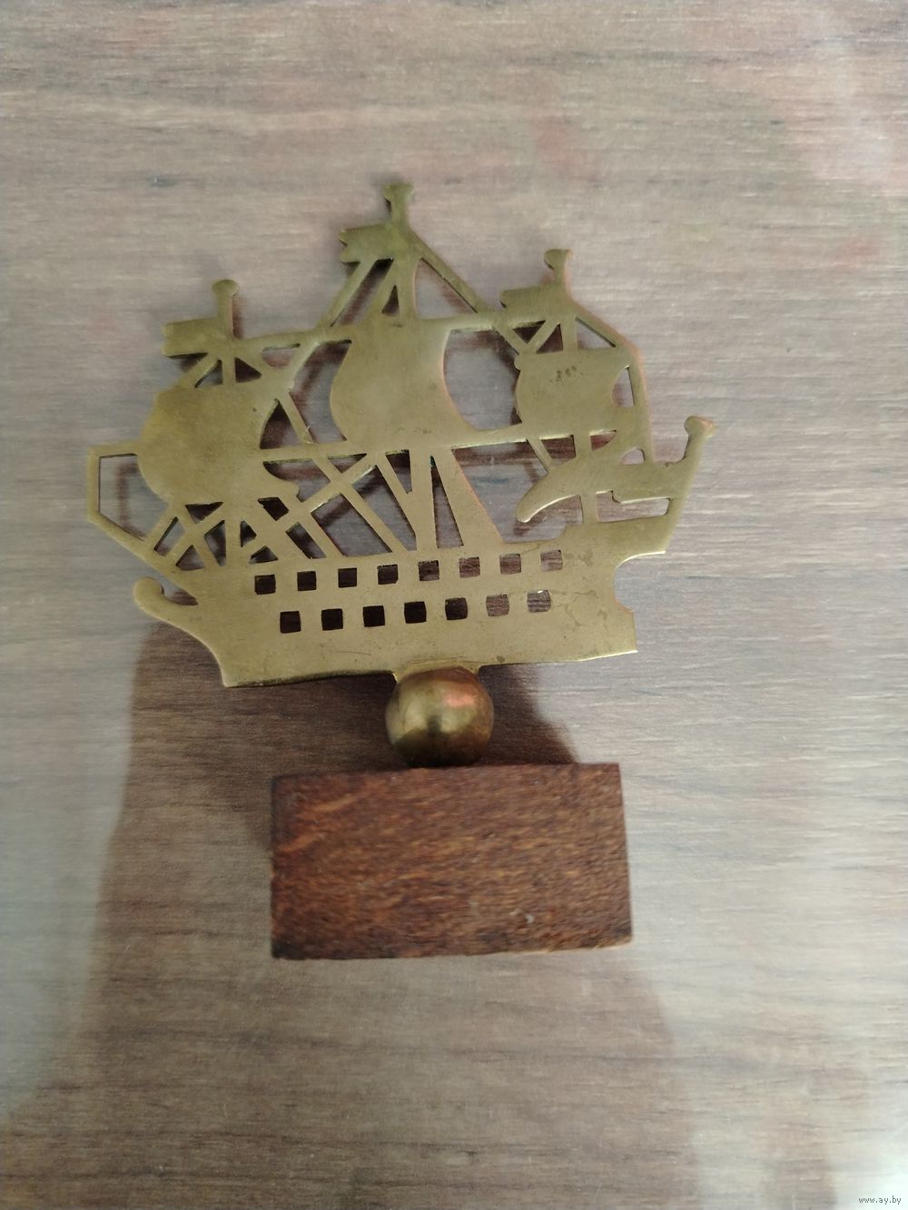 Сувенир настольный латунь и дерево. Высота 8.5 см.