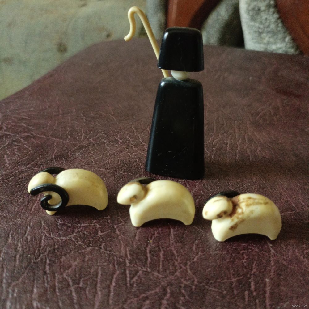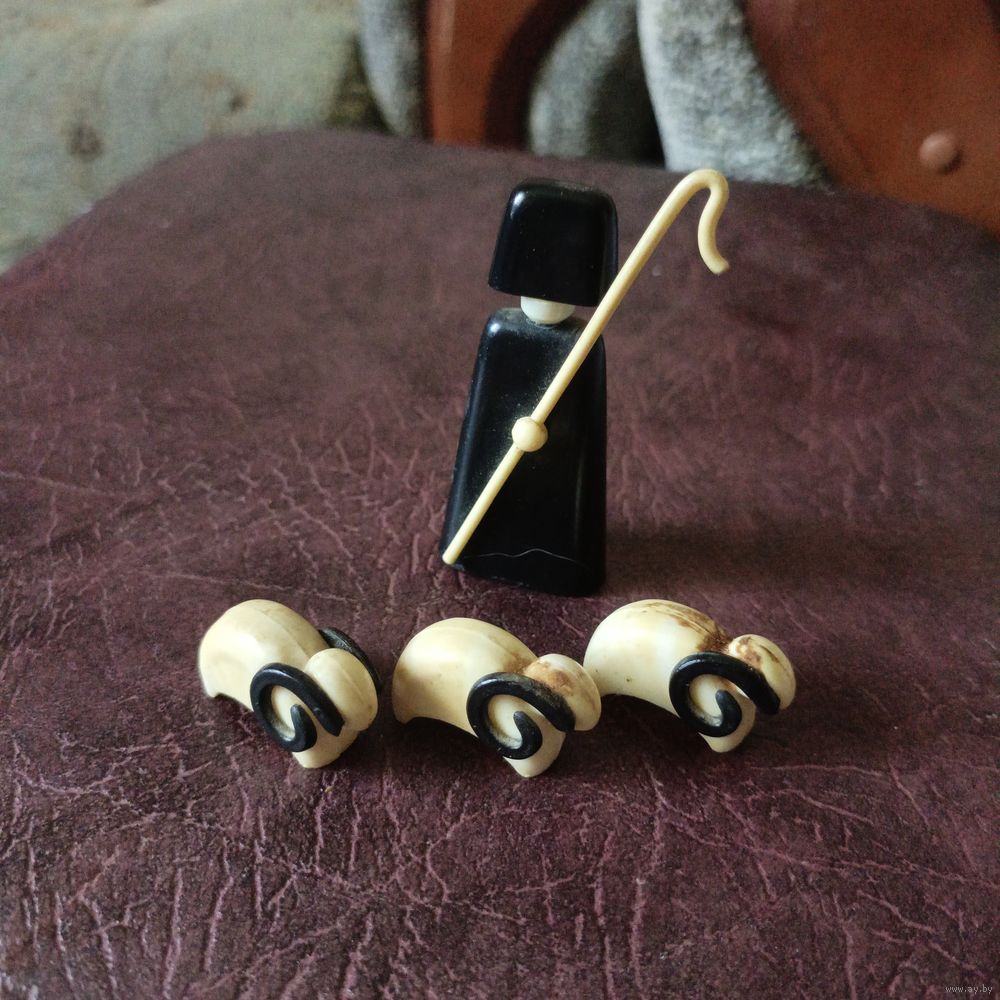 Пастух с барашками, у двух барашек отсутствует по одному рогу.