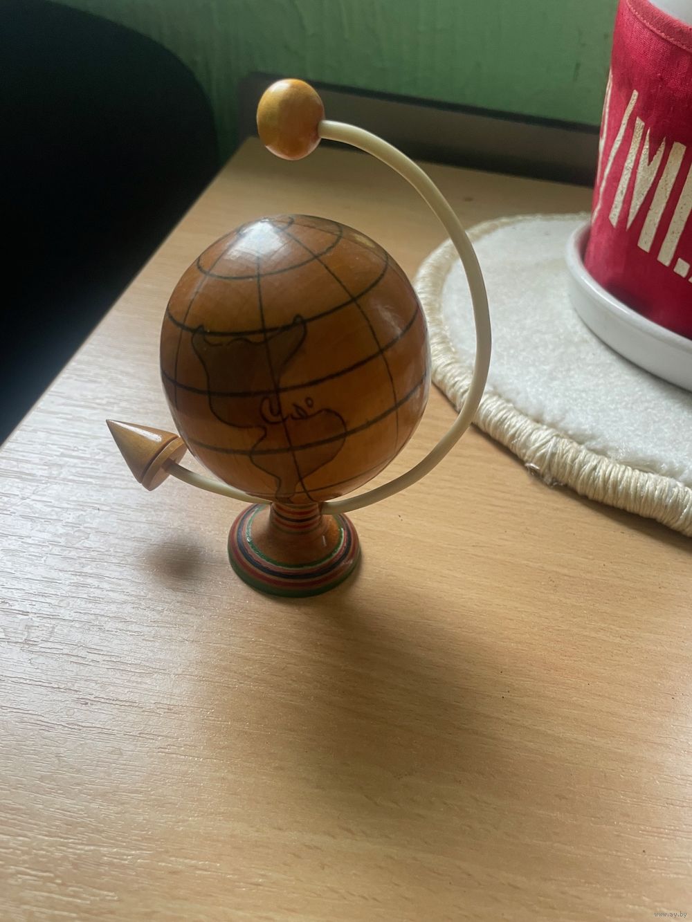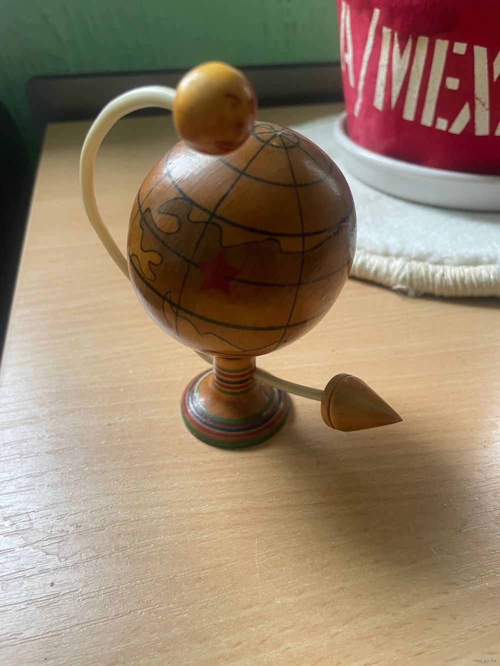 Сувенир деревянный Спутник, ракета, планета Земля, глобус. Полированное дерево. 1960-е. Редкость. СССР