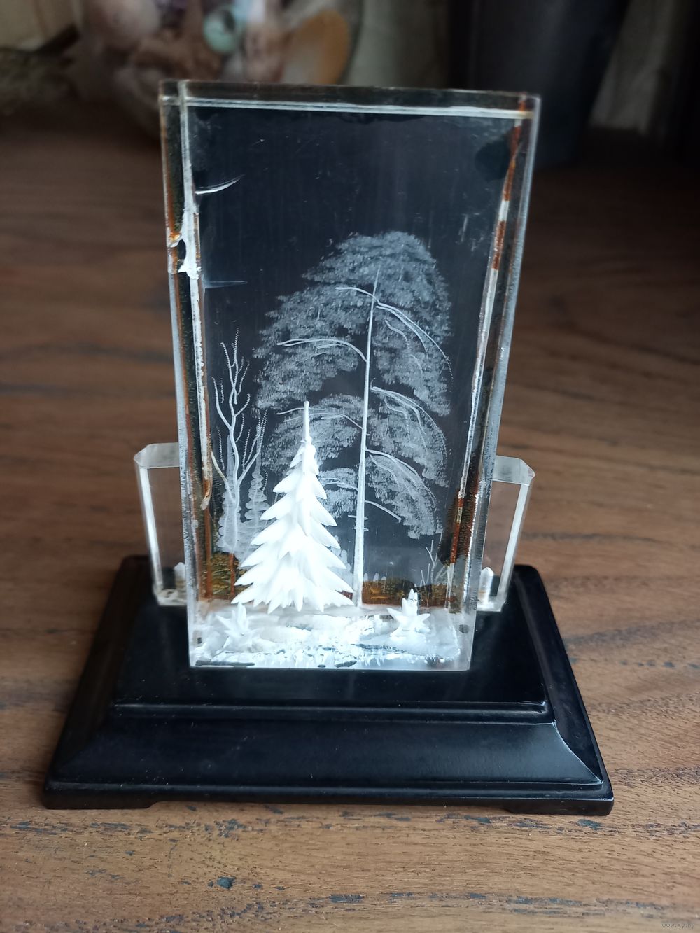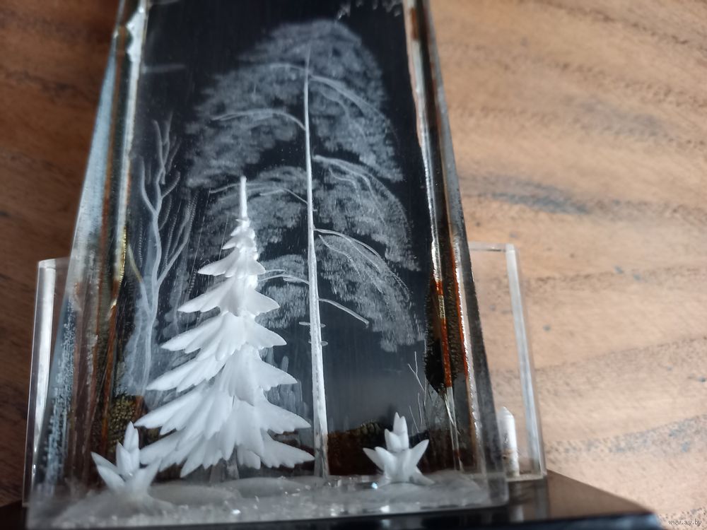 Сувенир настольный СССР, 70 - е годы, оргстекло, зимний пейзаж, высота 11 см, фабрика Культтоваров.