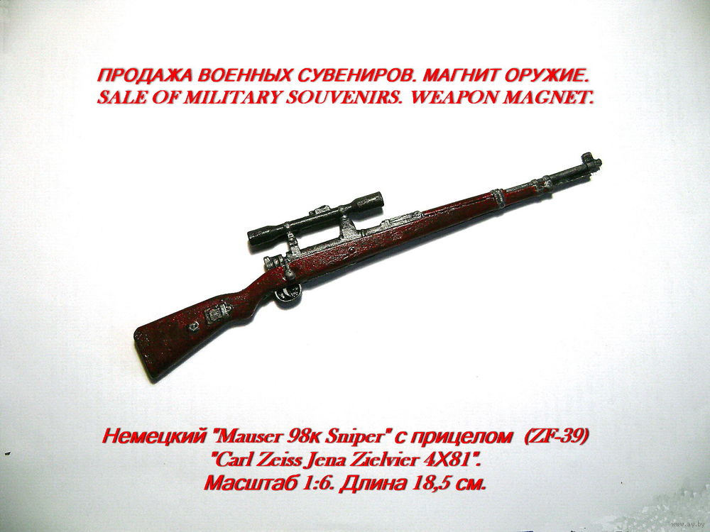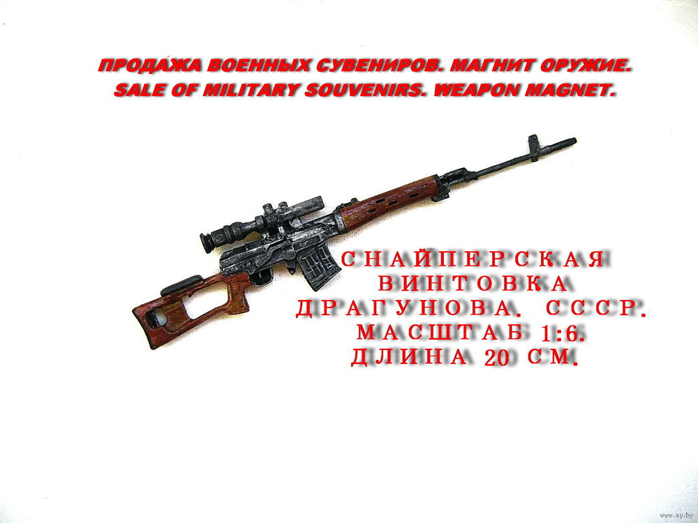 Сувенир. Объемный магнит. Оружие. Снайперская винтовка Драгунова, карабин Маузер и трехлинейка Мосина с снайперским прицелом.