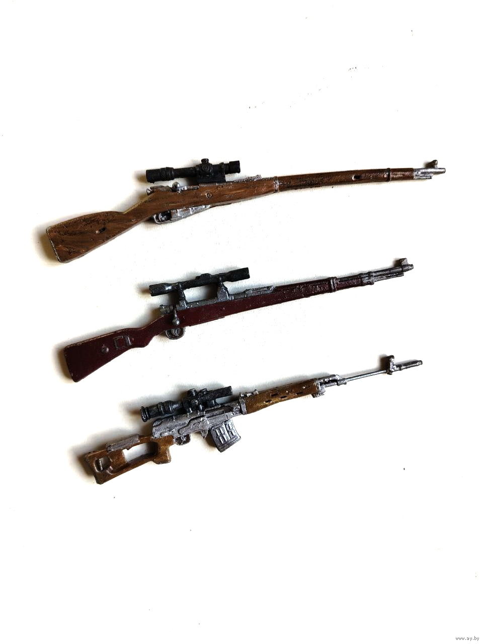 Сувенир. Объемный магнит. Оружие. Снайперская винтовка Драгунова, карабин Маузер и трехлинейка Мосина с снайперским прицелом.