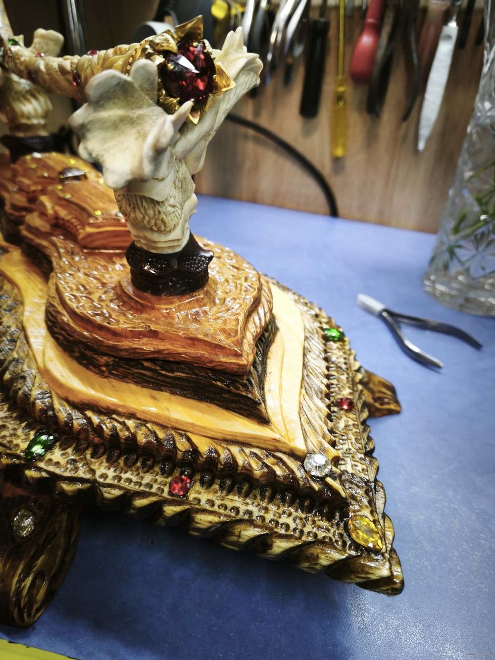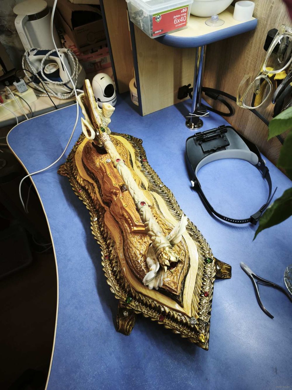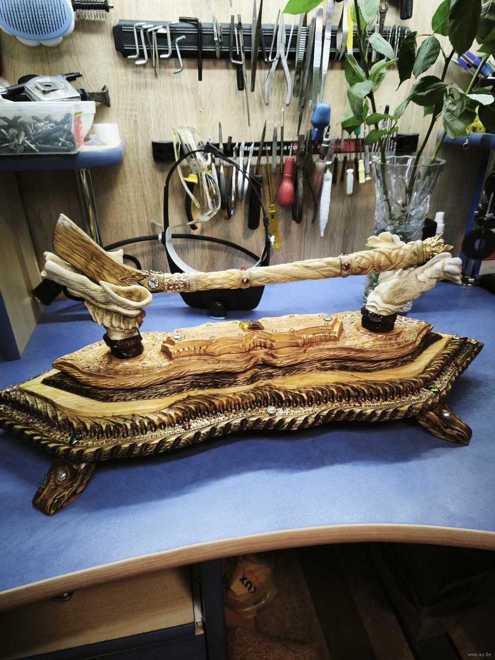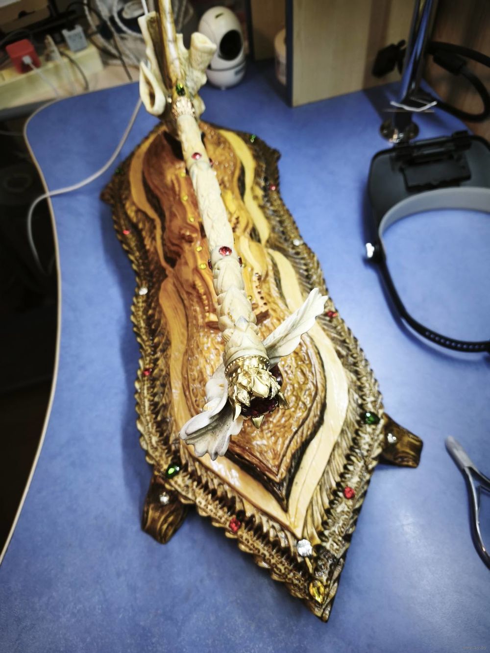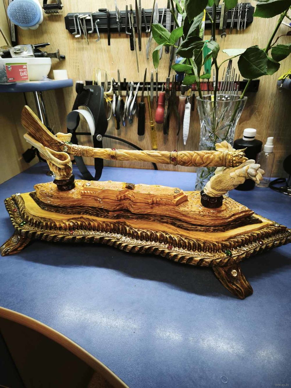 Клюшка из кости с подставкой ! Камушки стекло , подставка дуб , кость ! Любителям хоккея с шайбой ! С низу написано талисман удачи !