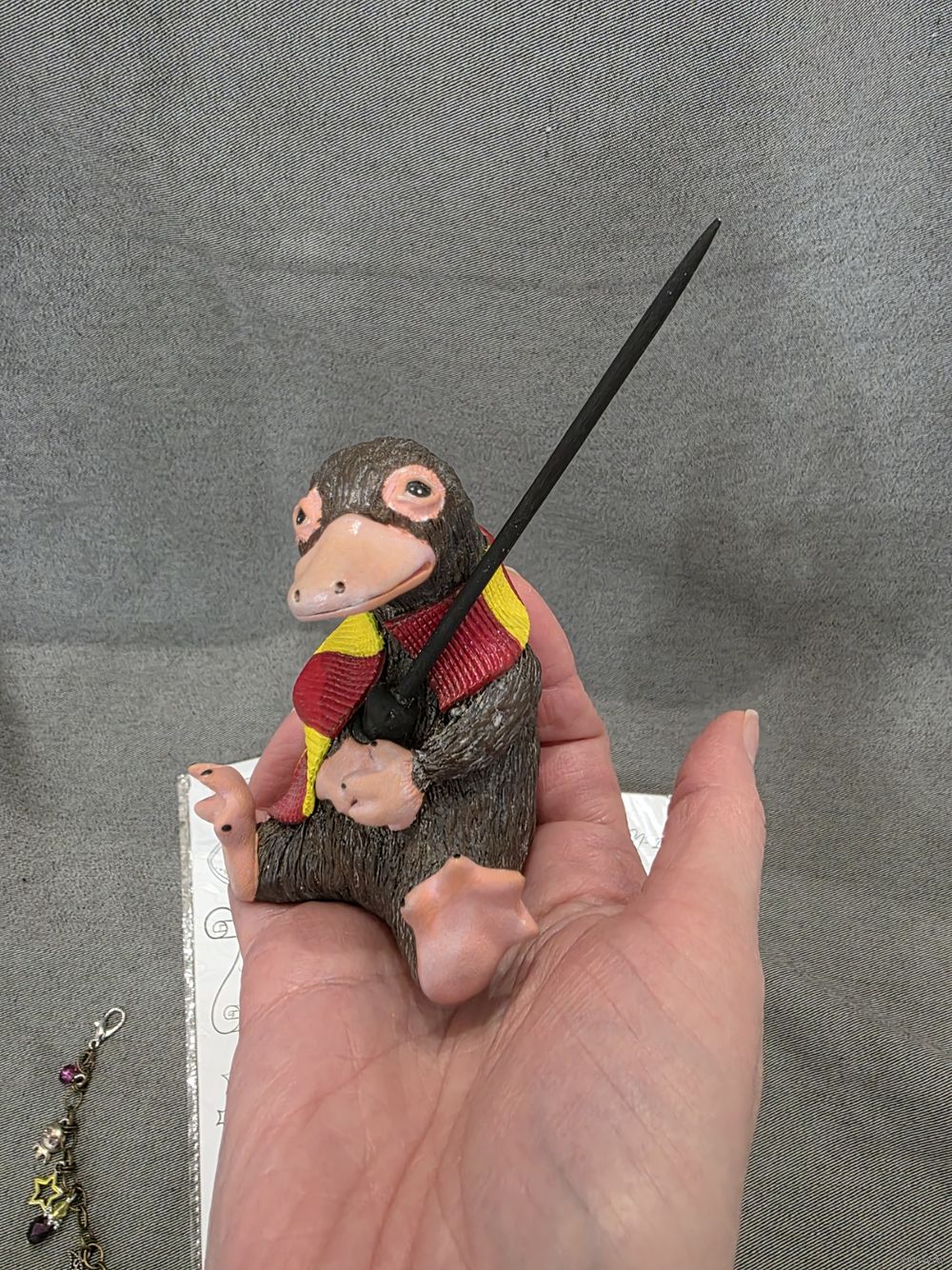 Забавная фигурка-сувенир по вселенной Гарри Поттера в шарфике Гриффиндора с волшебной палочкой.