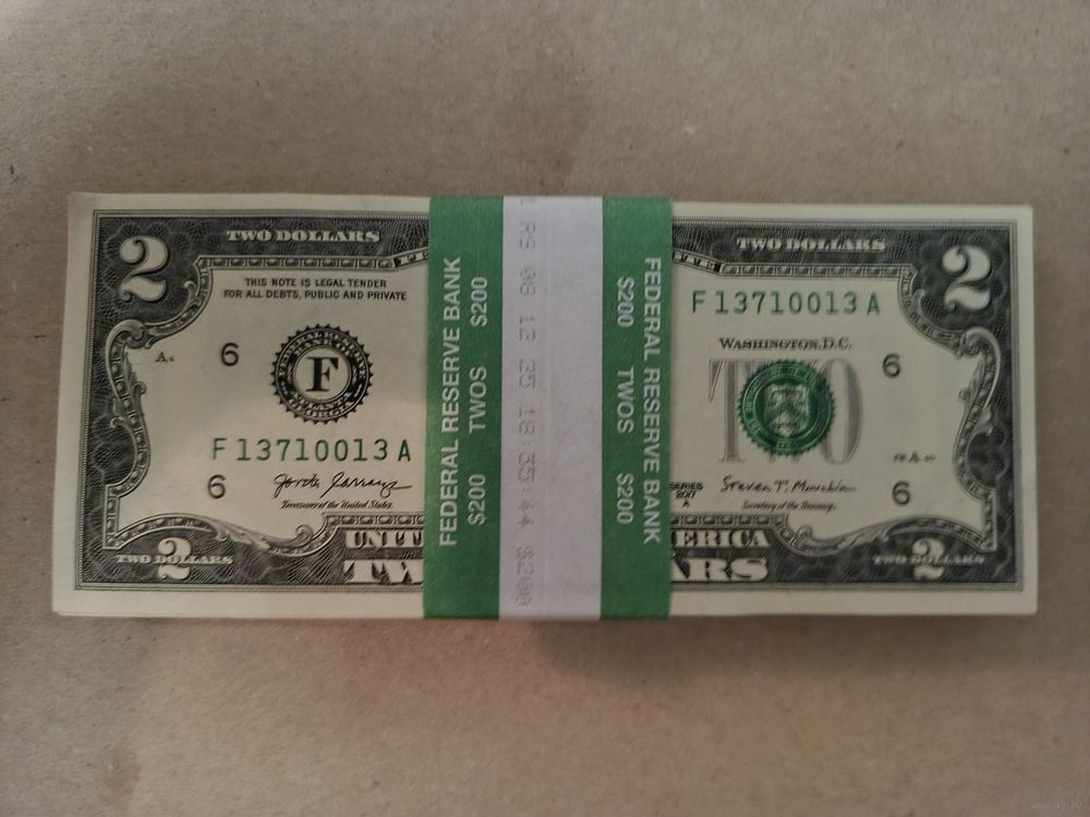 Новый сувенирный корешок номиналом 200 долларов (100 купюр), номера по порядку.