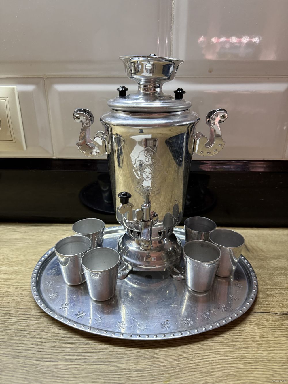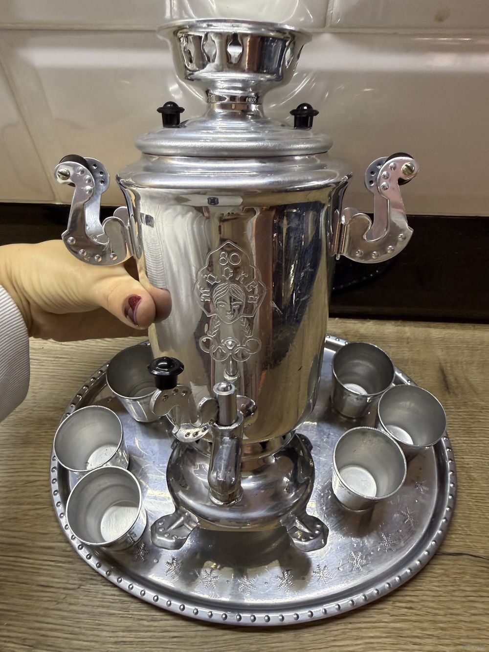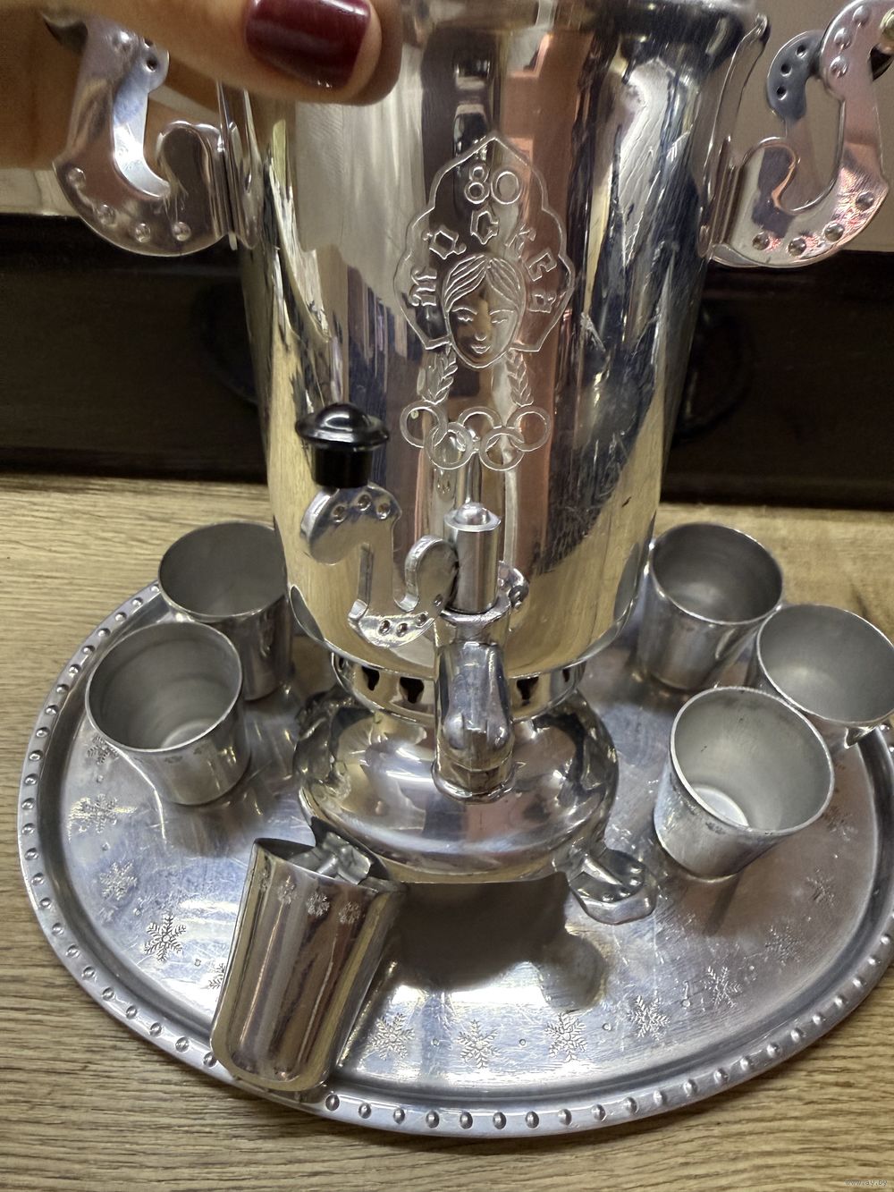 Сувенирный самовар и 6 стопок поднос Олимпиада 80