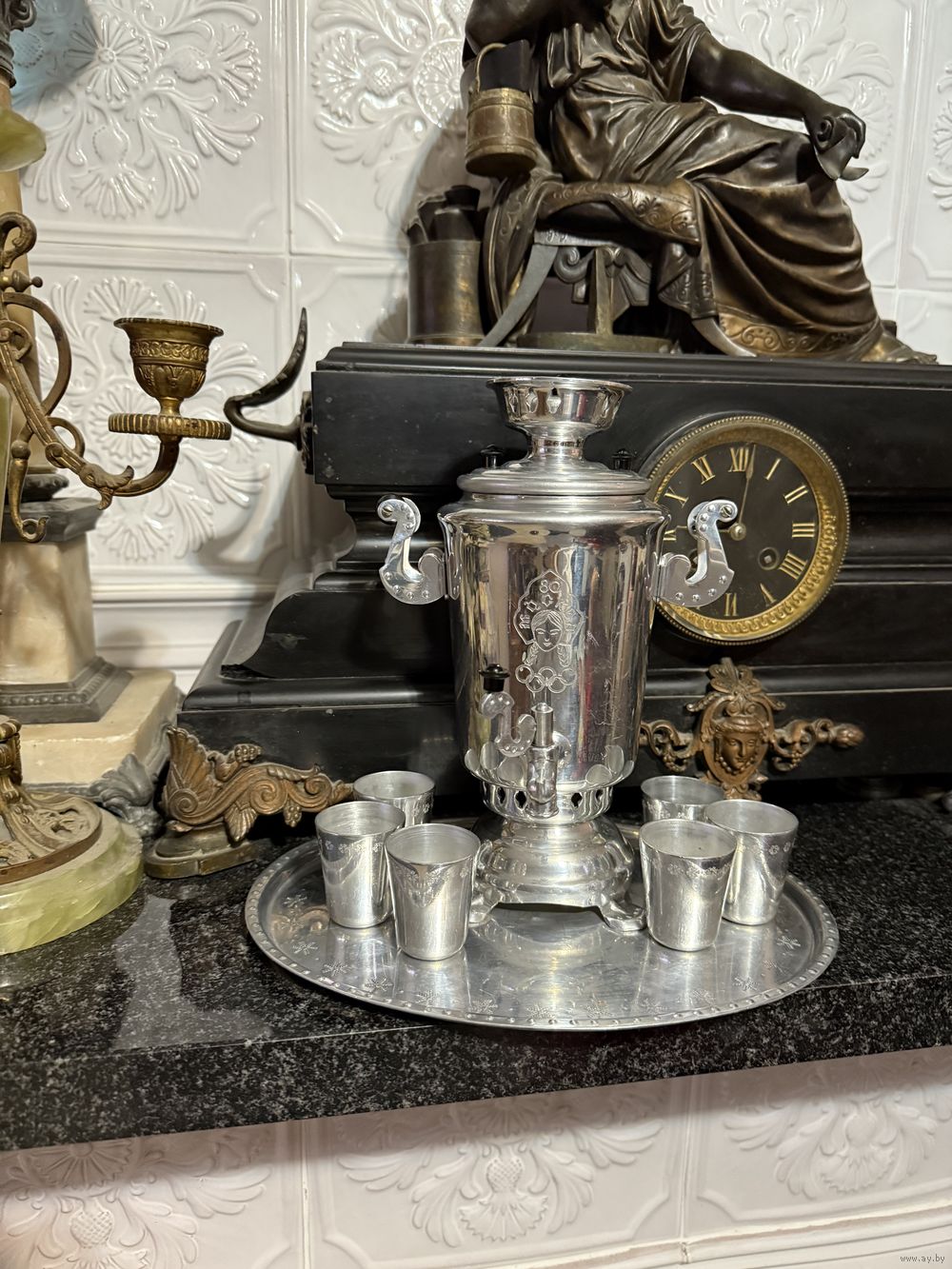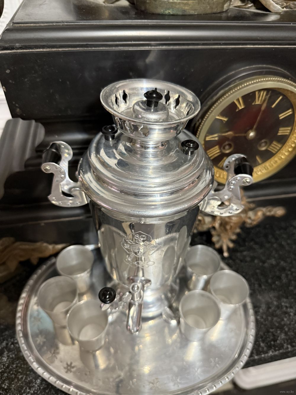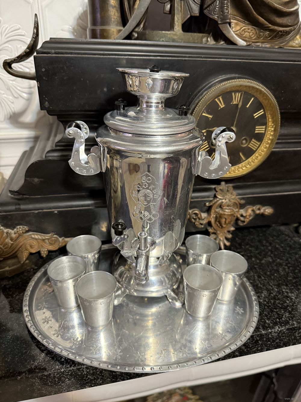 Сувенирный самовар и 6 стопок поднос Олимпиада 80