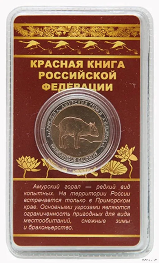 Сувенирный жетон Красная книга РФ Амурский горал в блистере
