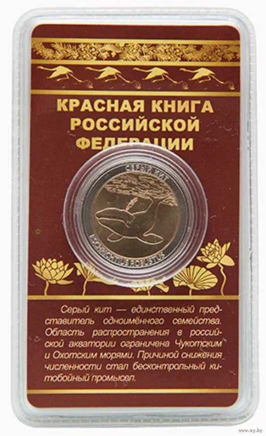 Сувенирный жетон Красная книга РФ Серый кит в блистере