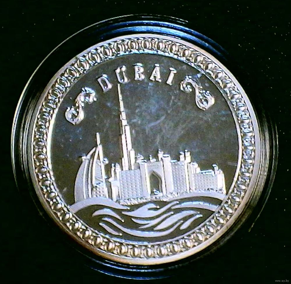 Сувенирный жетон (медаль), посвященная Дубаю и изображающая небоскреб Бурдж-Халифа, самое высокое здание в мире