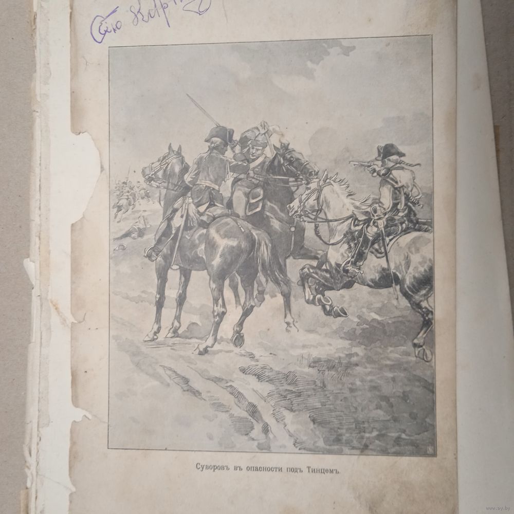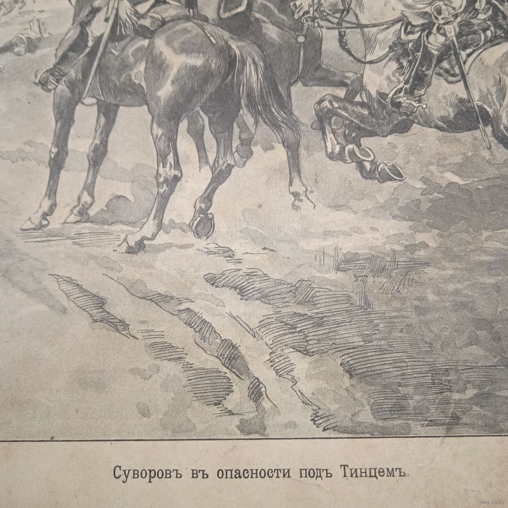 Суворовъ въ опасности подъ Тинцемъ. Энциклопедическая гравюра СПБ. 19-20века 25х17см.