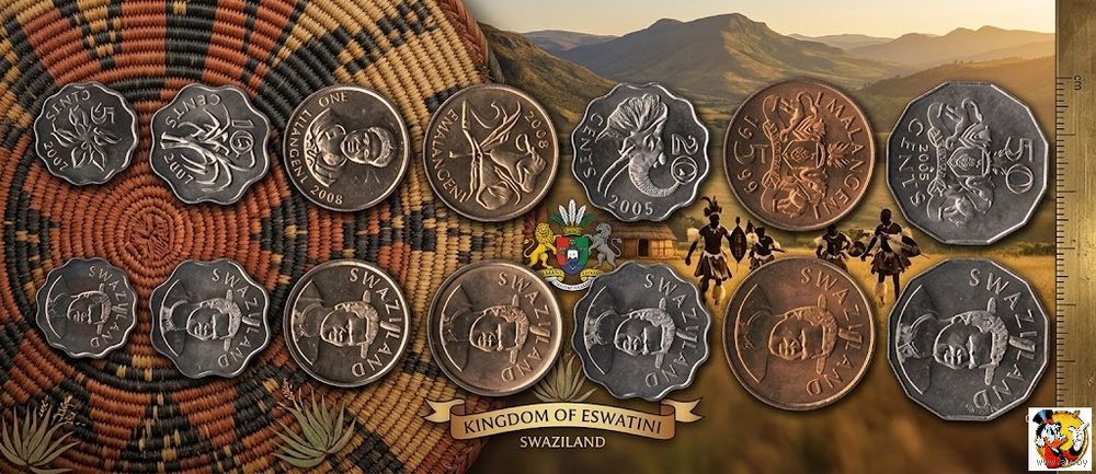 Свазиленд (Эсватини) набор монет 5, 10, 20, 50 центов; 1, 2, 5 лилангени, UNC. Сторгуй за свою цену, предложи обмен!