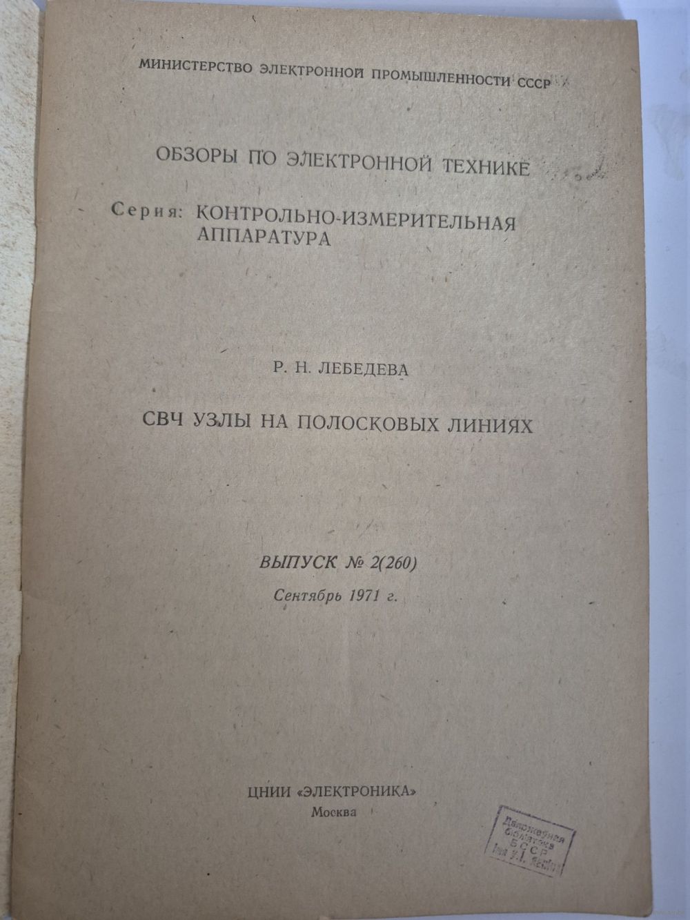 3. СВЧ узлы на полосковых линиях [Текст] / Р. Н. Лебедева. - Москва : [б. и.], 1971. - 50 с. : ил.; 22 см. - (Обзоры по электронной технике. Серия: Контрольно-измерительная аппаратура/ М-во электронной пром-сти СССР. ЦНИИ "Электроника"; Вып. 2 (260)).