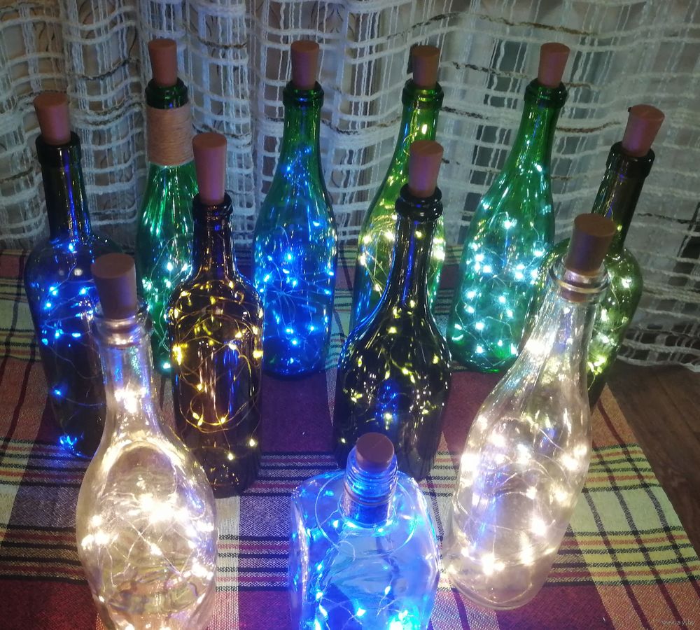 Светодиодная гирлянда с пробкой длинной 2 м. на батарейках, 20 шт. LED светодиодов