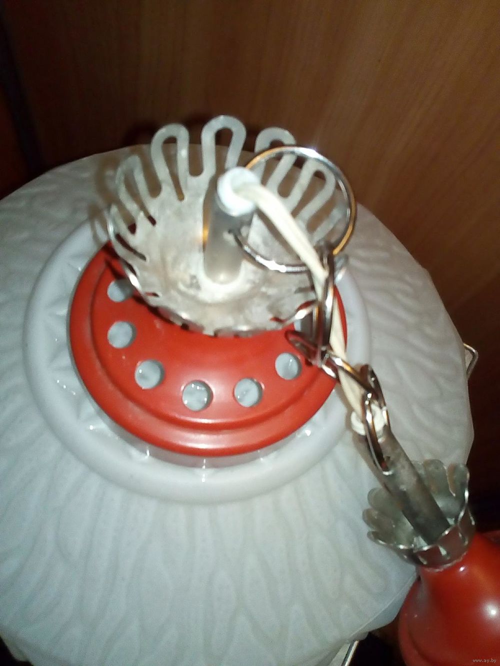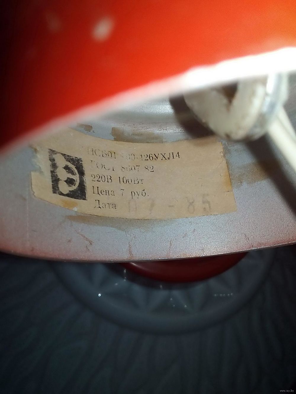 | на фото, рабочая, высота 50 см (можно уменьшить), диаметр плафона 32 см, стекло. | |