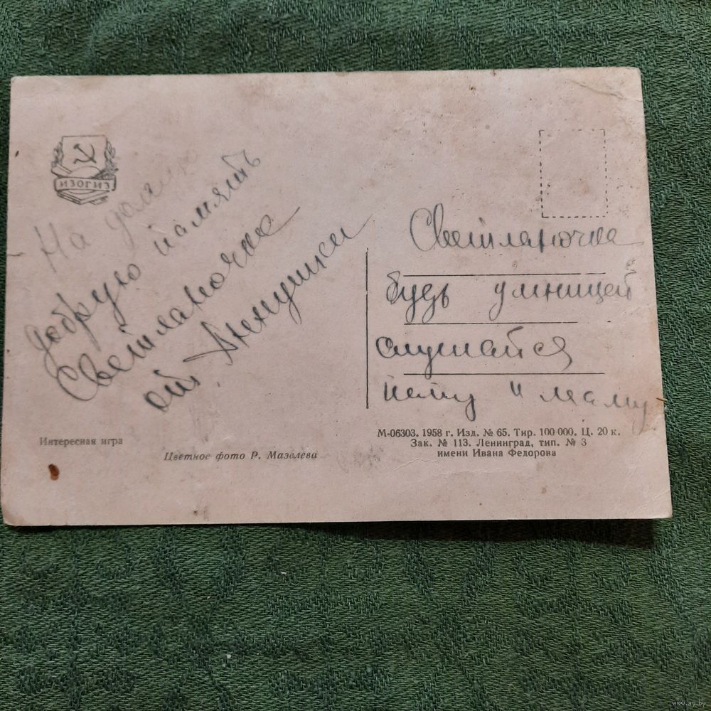 "Светланочка будь умницей слушайся папу и маму". Москва 1958г.