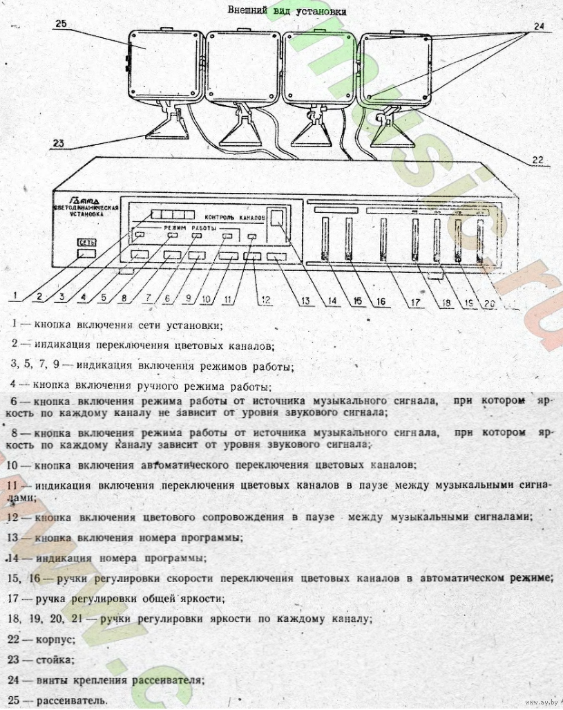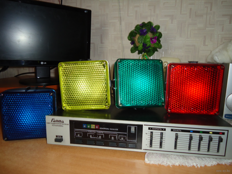 | Цветомузыка Гамма, блок управления + 4 фонаря + 4 опоры для фонарей, полностью в рабочем состоянии. | |